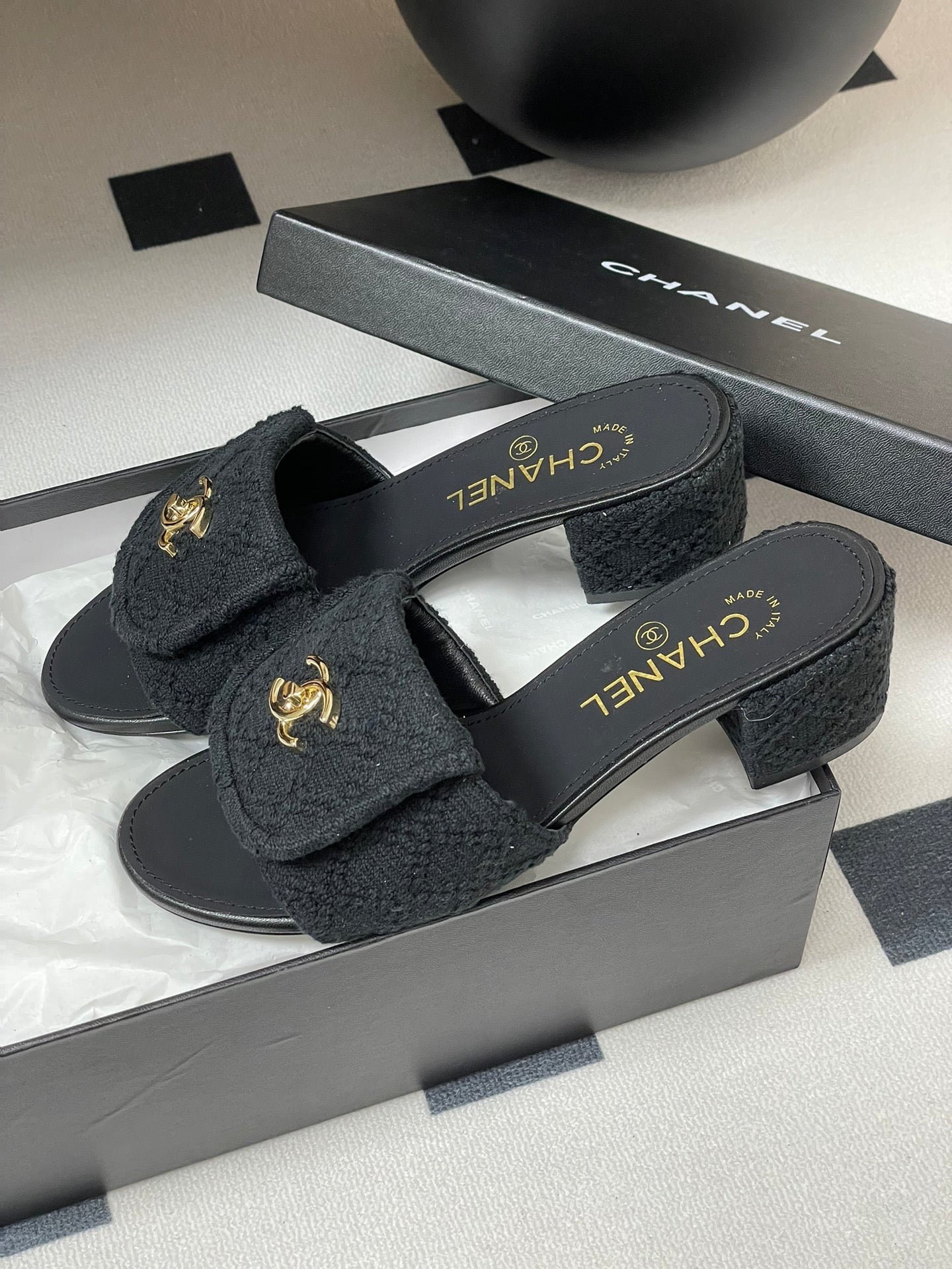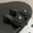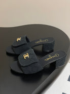 CC 25S Buckle Bag Mule Sandal 50mm Black Fabric and Sheepskin 247600