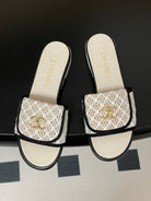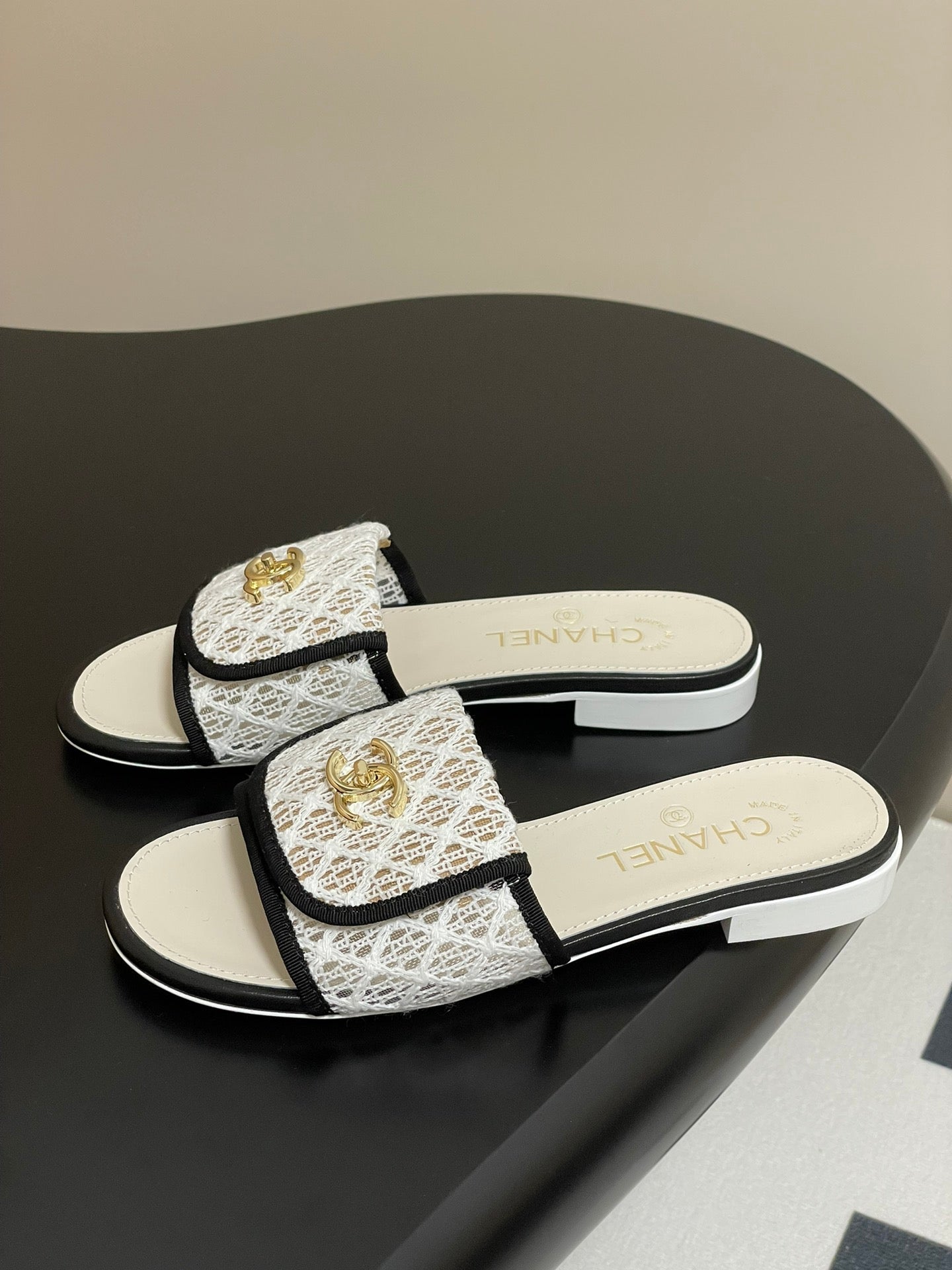 CC 25S Buckle Bag Mule White Mix Black Lace Fabric and Sheepskin 247590