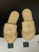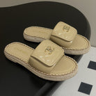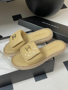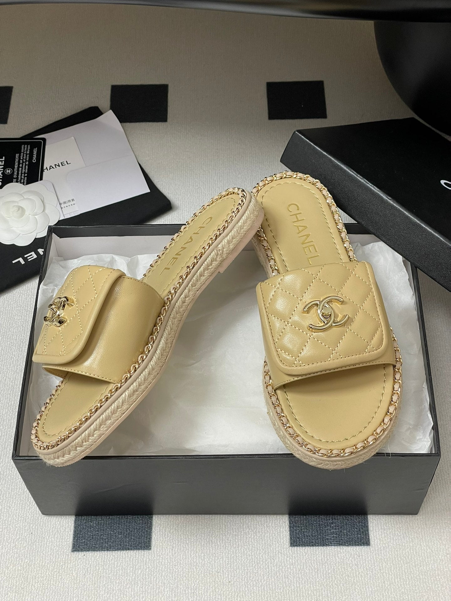 CC 25S Chain Ring Edge Buckle Bag Mule Sandal Beige Sheepskin 247586