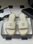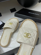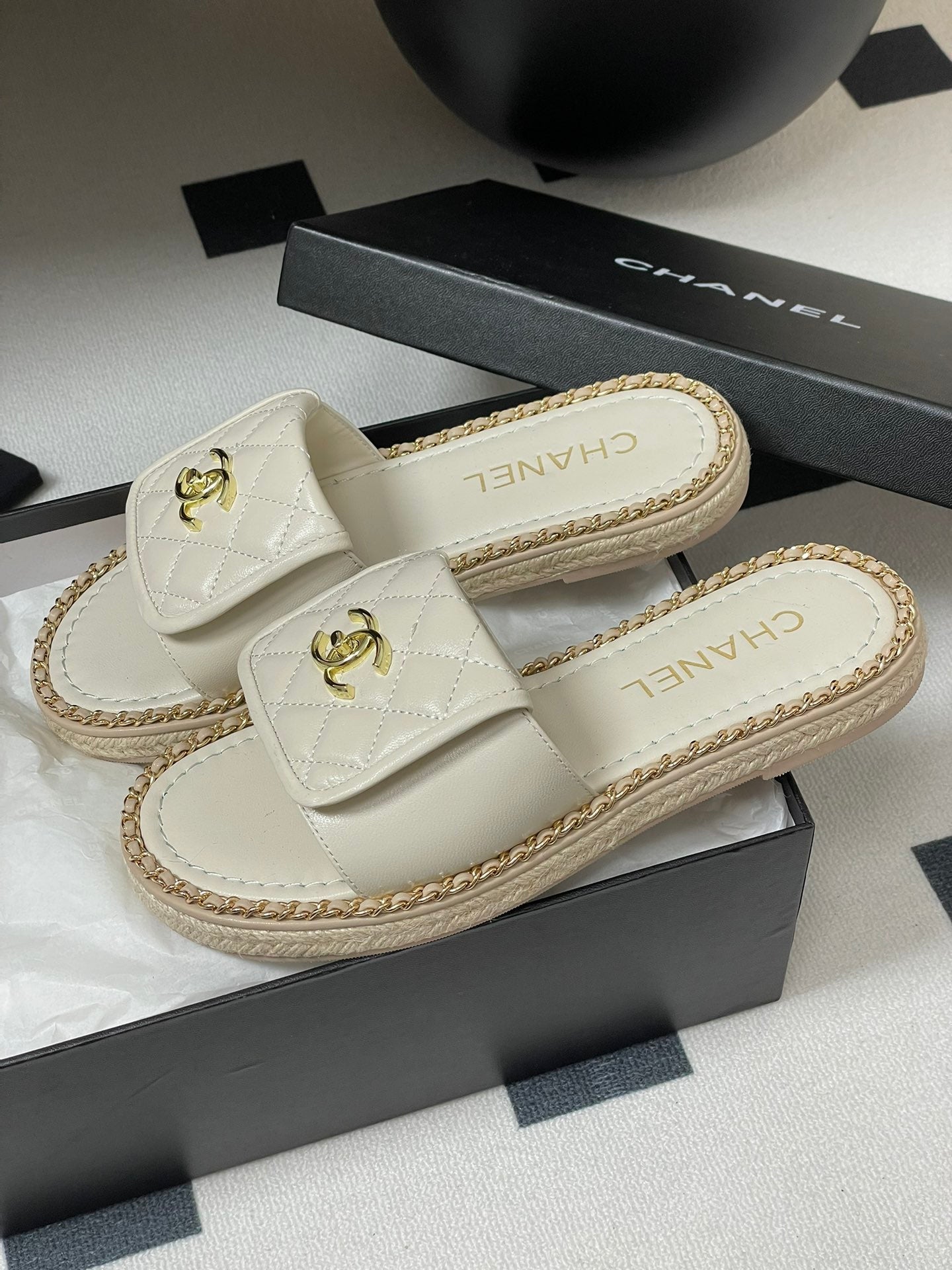 CC 25S Chain Ring Edge Buckle Bag Mule Sandal White Sheepskin 247587
