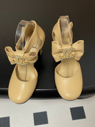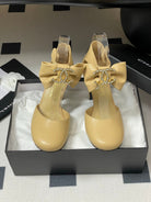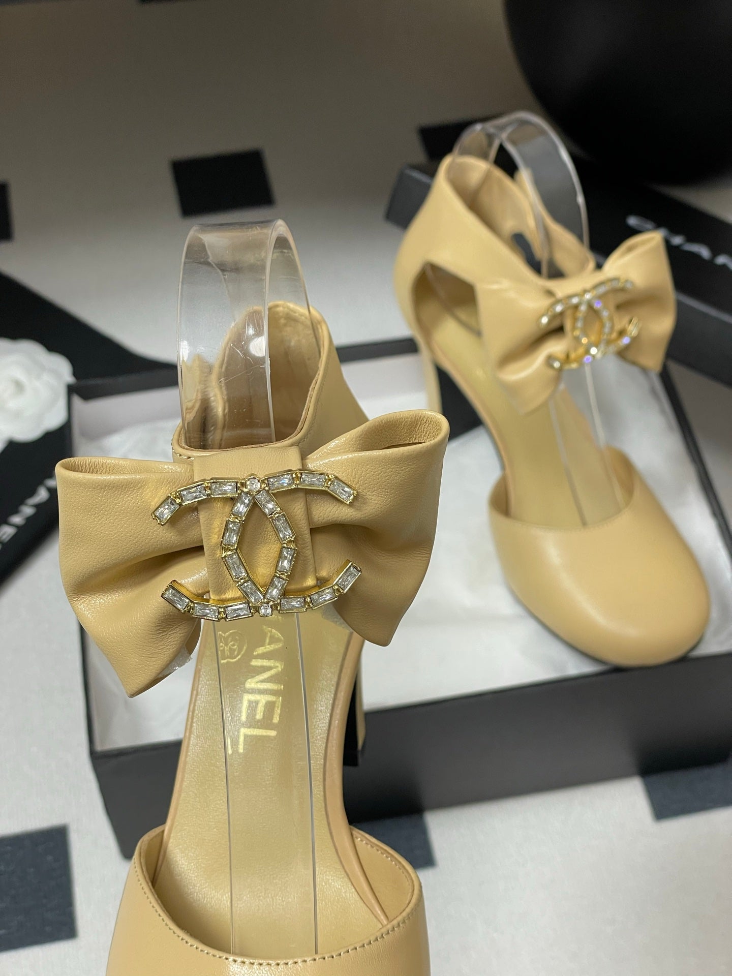 CC 25S Double C Rhinestone Buckle Bow High Heel Pump 85 Beige Sheepskin 247571