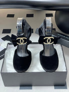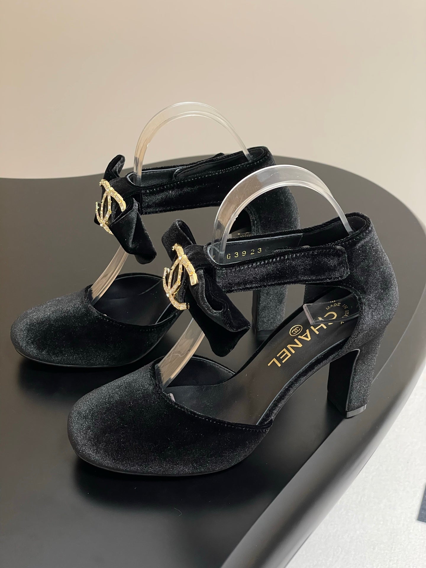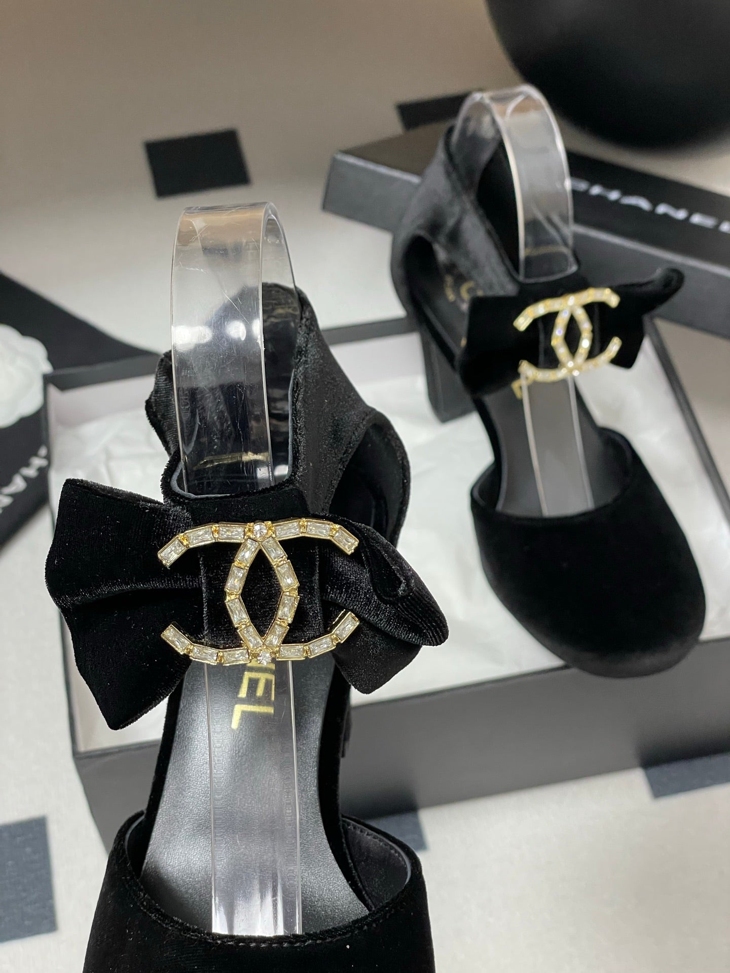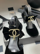 CC 25S Double C Rhinestone Buckle Bow High Heel Pump 85 Black Velvet 247570