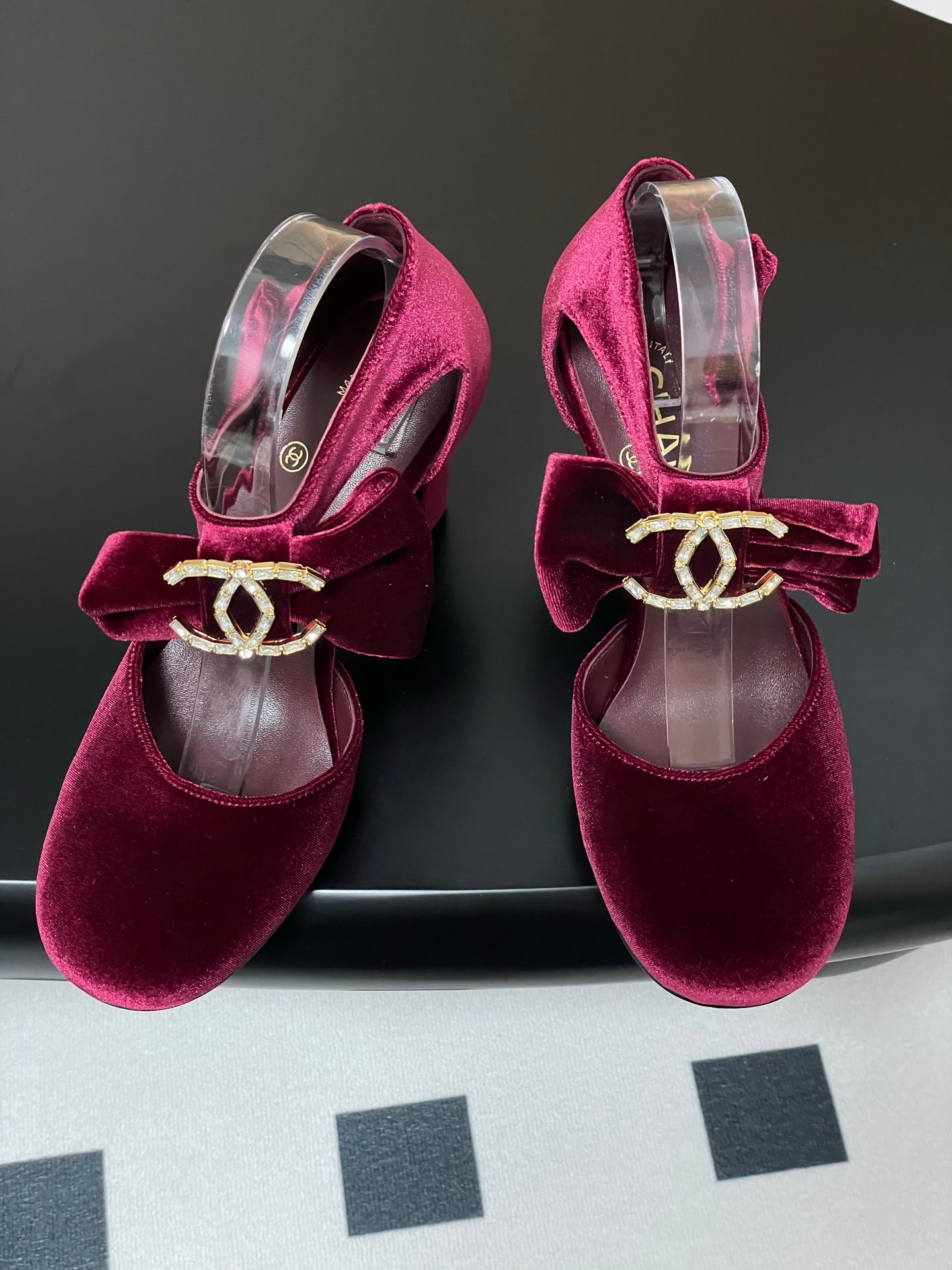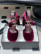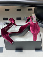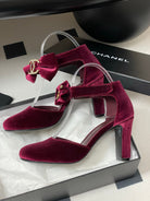 CC 25S Double C Rhinestone Buckle Bow High Heel Pump 85 Wine Velvet 247569