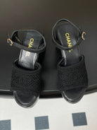CC 25S Small Wedge Thick-Soled Sandal 10cm Black Woven 247606