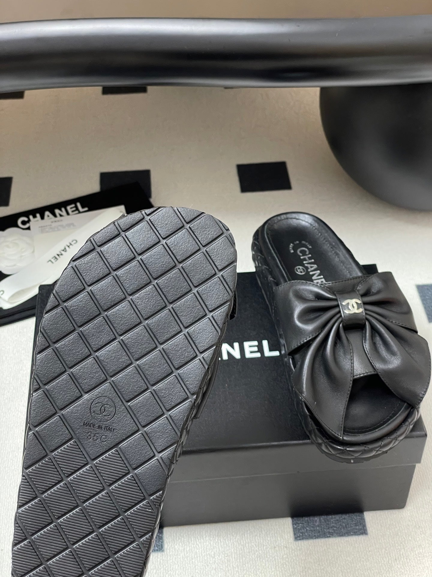 CC 25SS Big Bow Thick-soled Mule Sandals Black Lambskin 319708