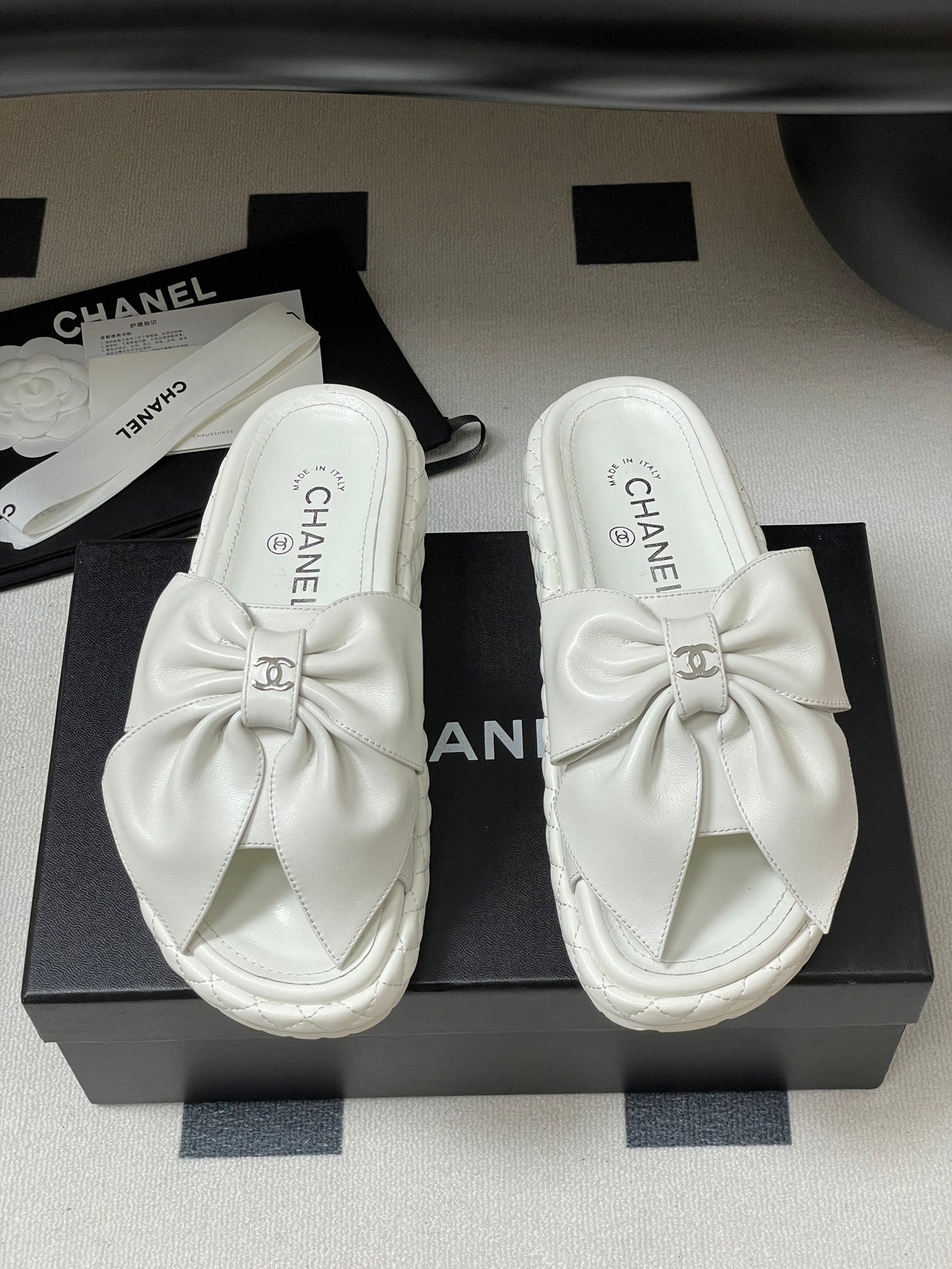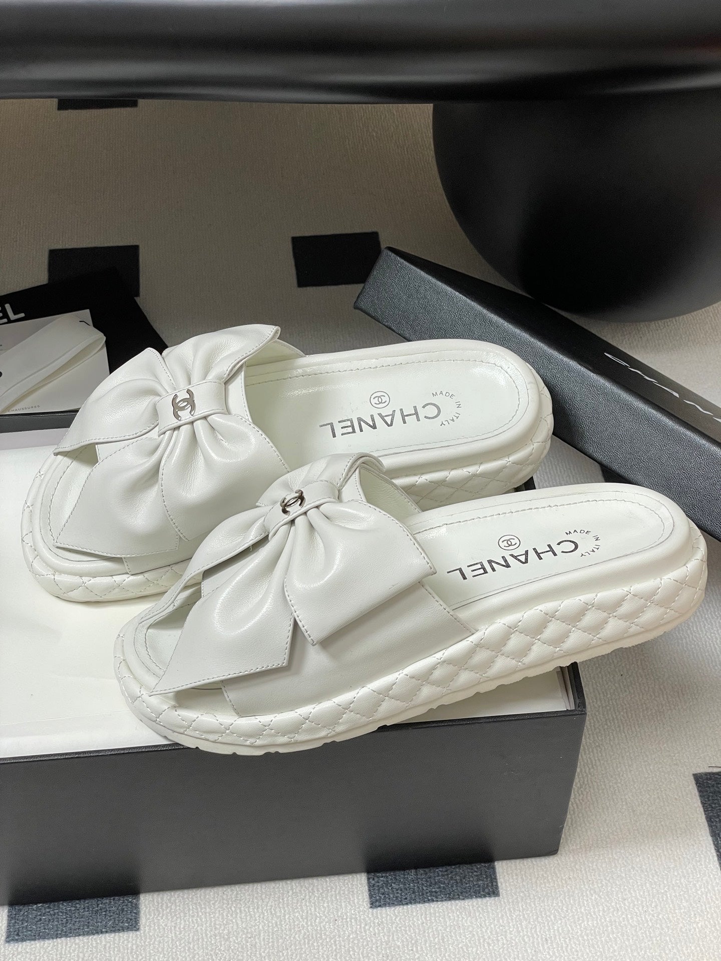CC 25SS Big Bow Thick-soled Mule Sandals White Lambskin 319707