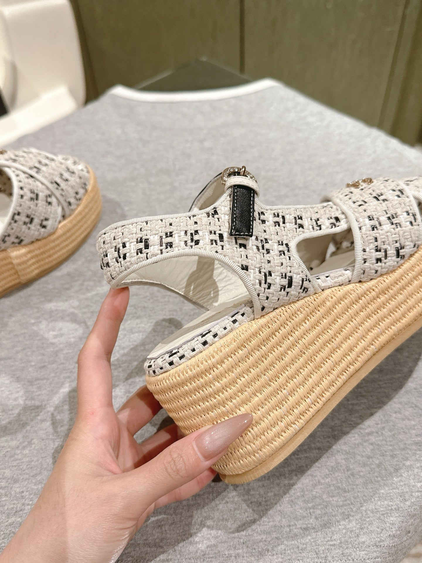 CC 25ss Espadrille Sandals 85mm Black Colorful Tweed Cowhide 462246