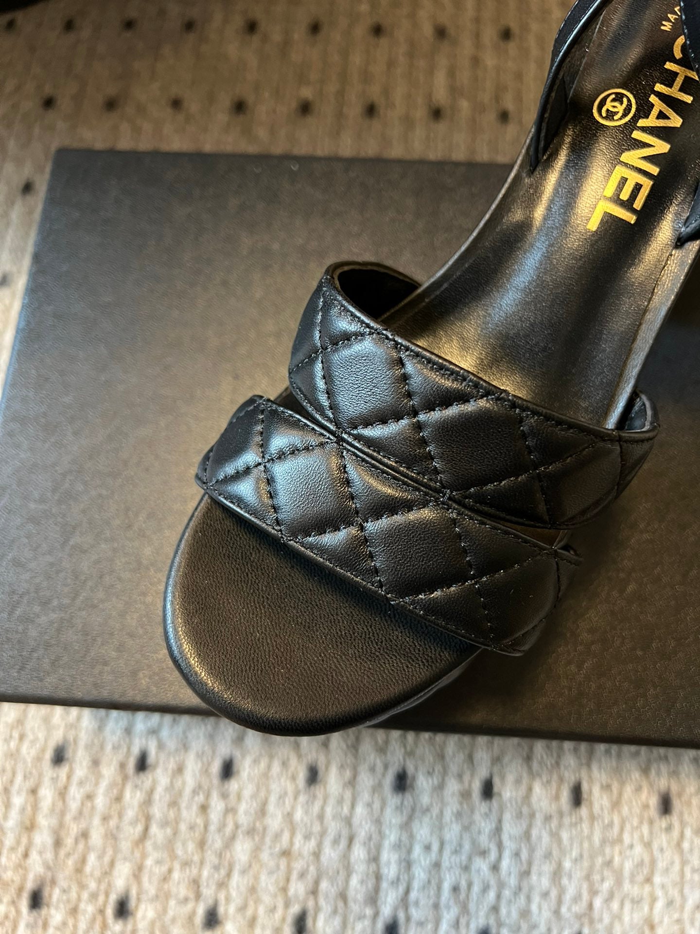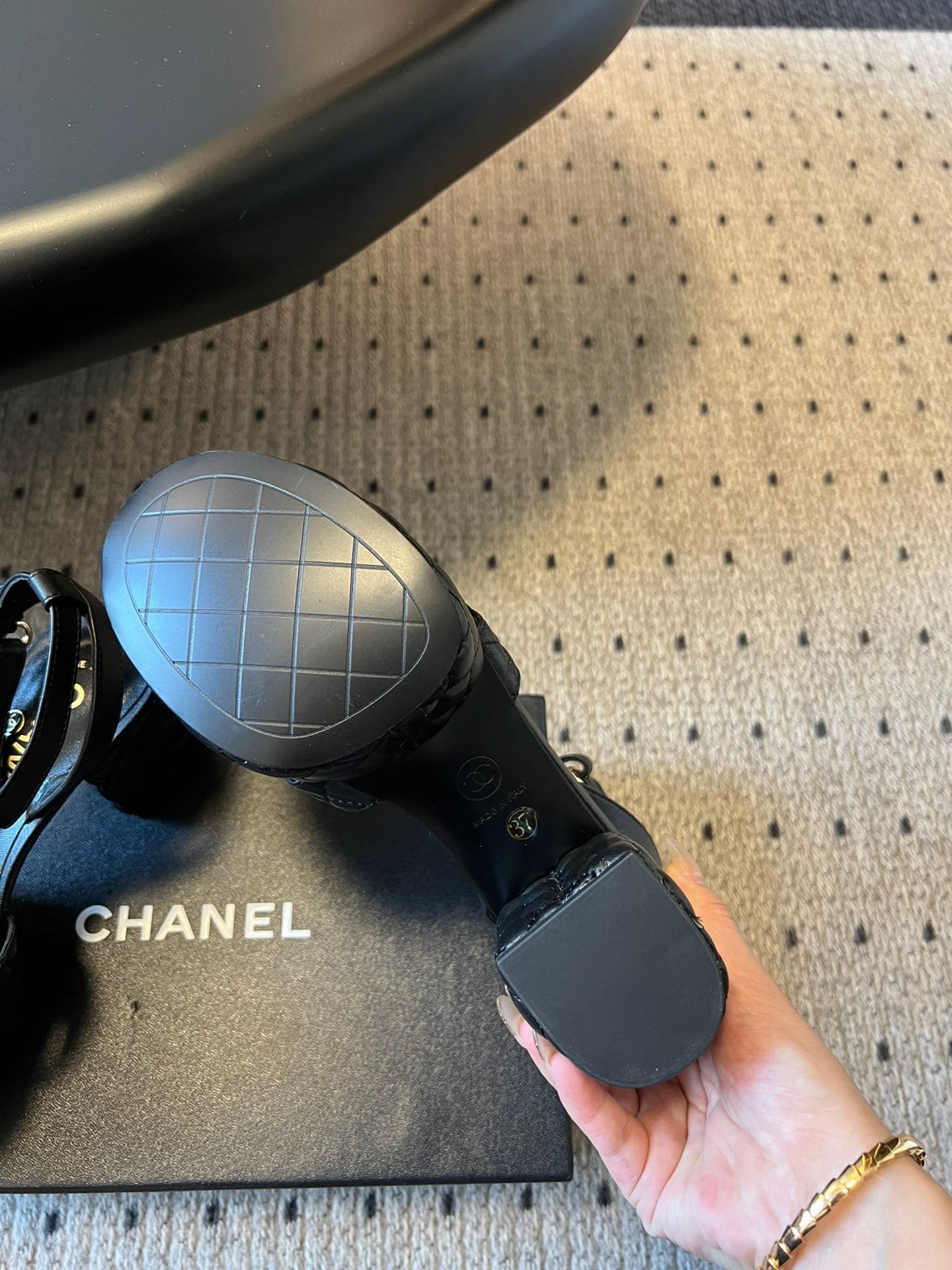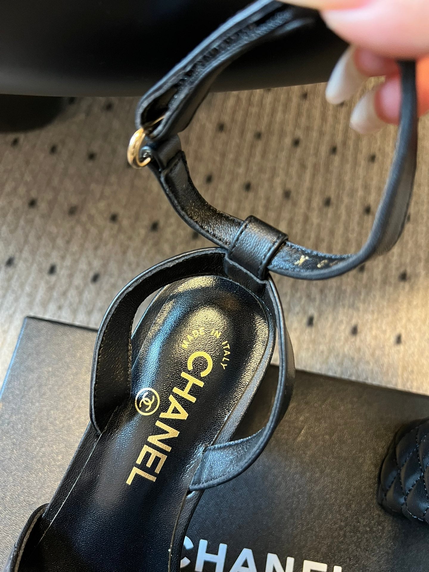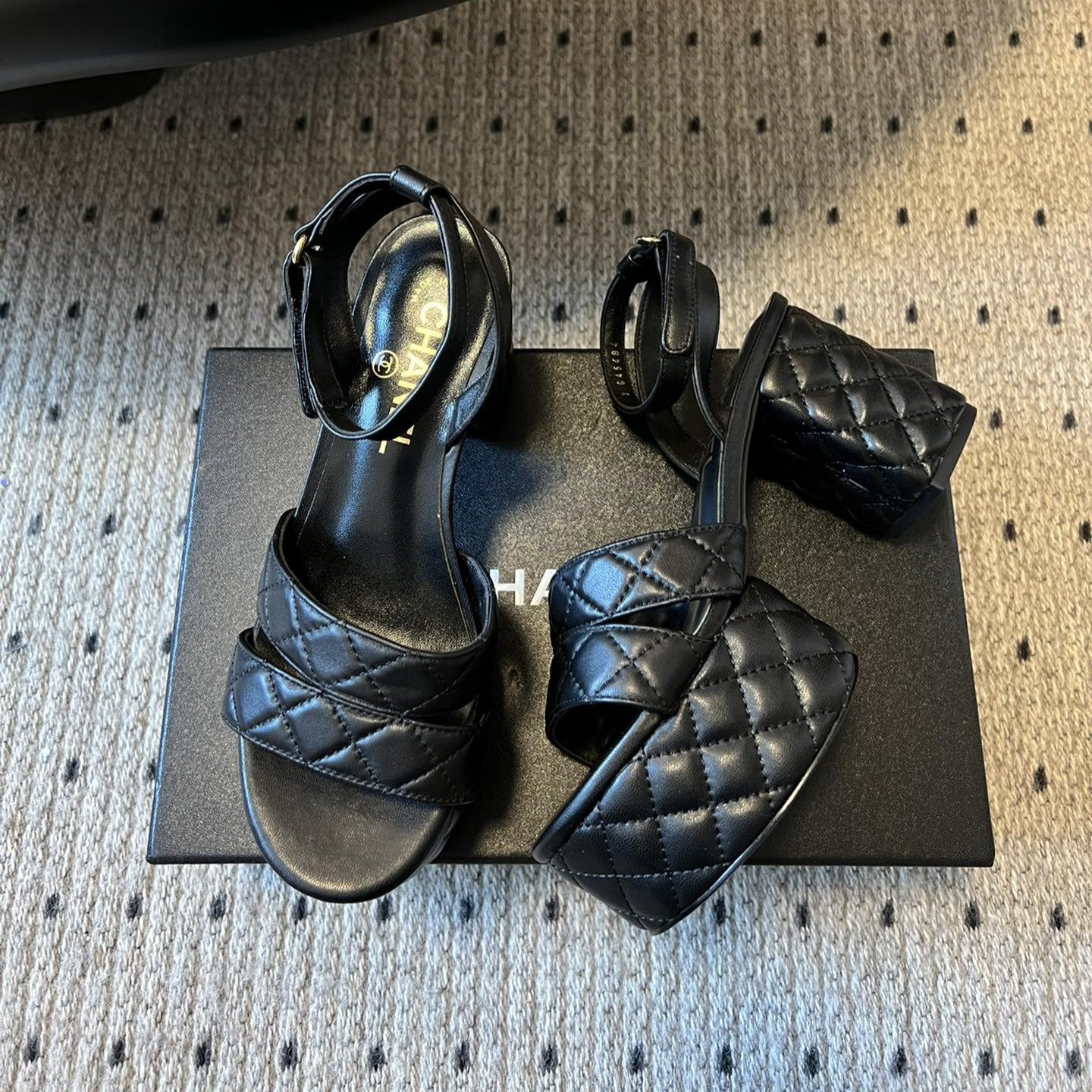 CC 25SS Platform Sandals 8.5cm Black Sheepskin 319628