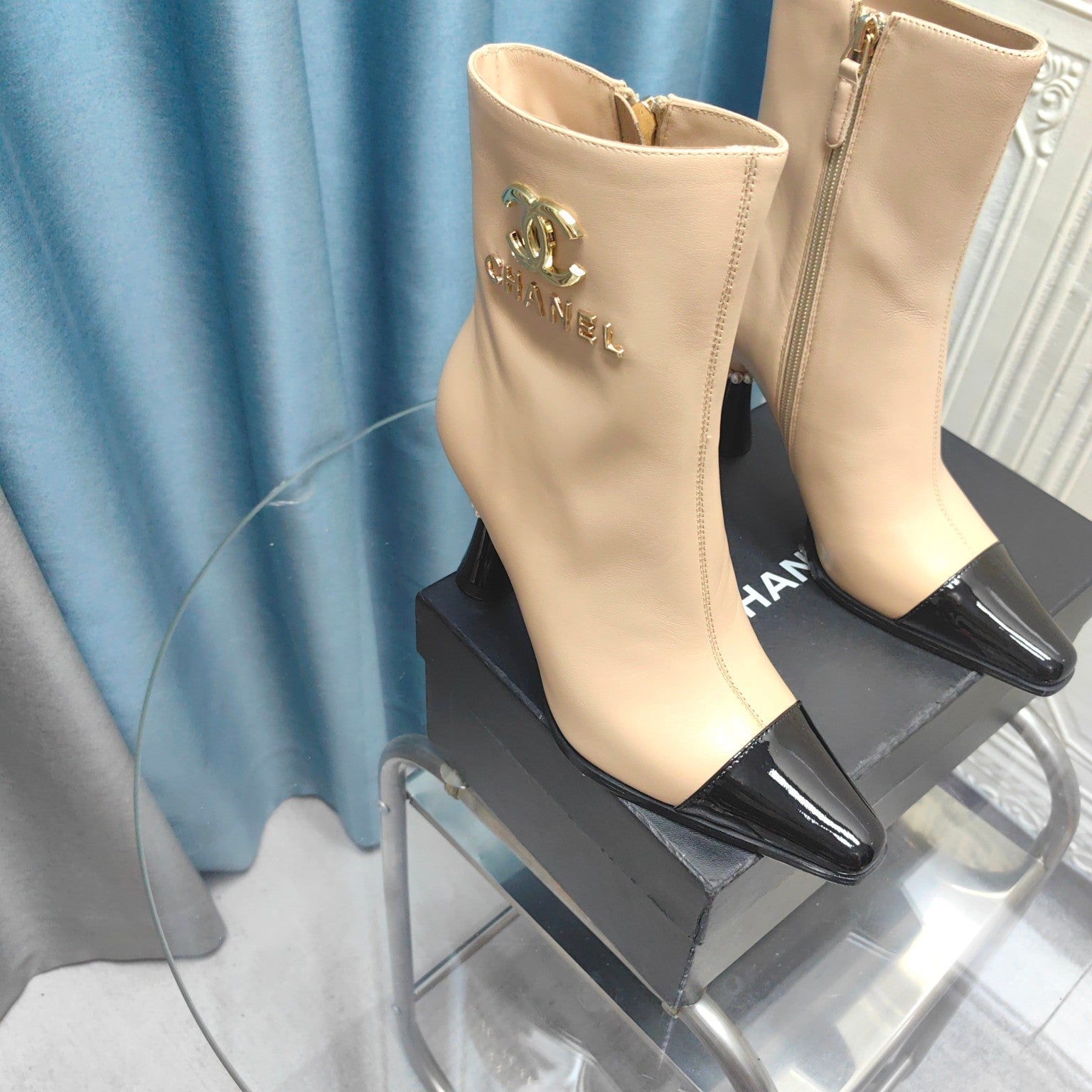 CC Ankle Boots Beige Cowhide And Lambskin