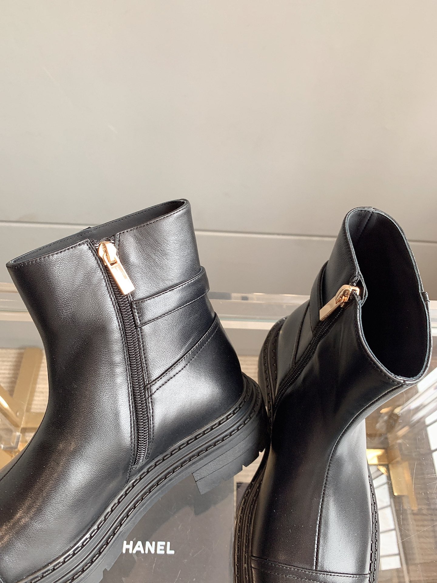 CC Cap Toe Ankle Boots Black Cowhide 464570