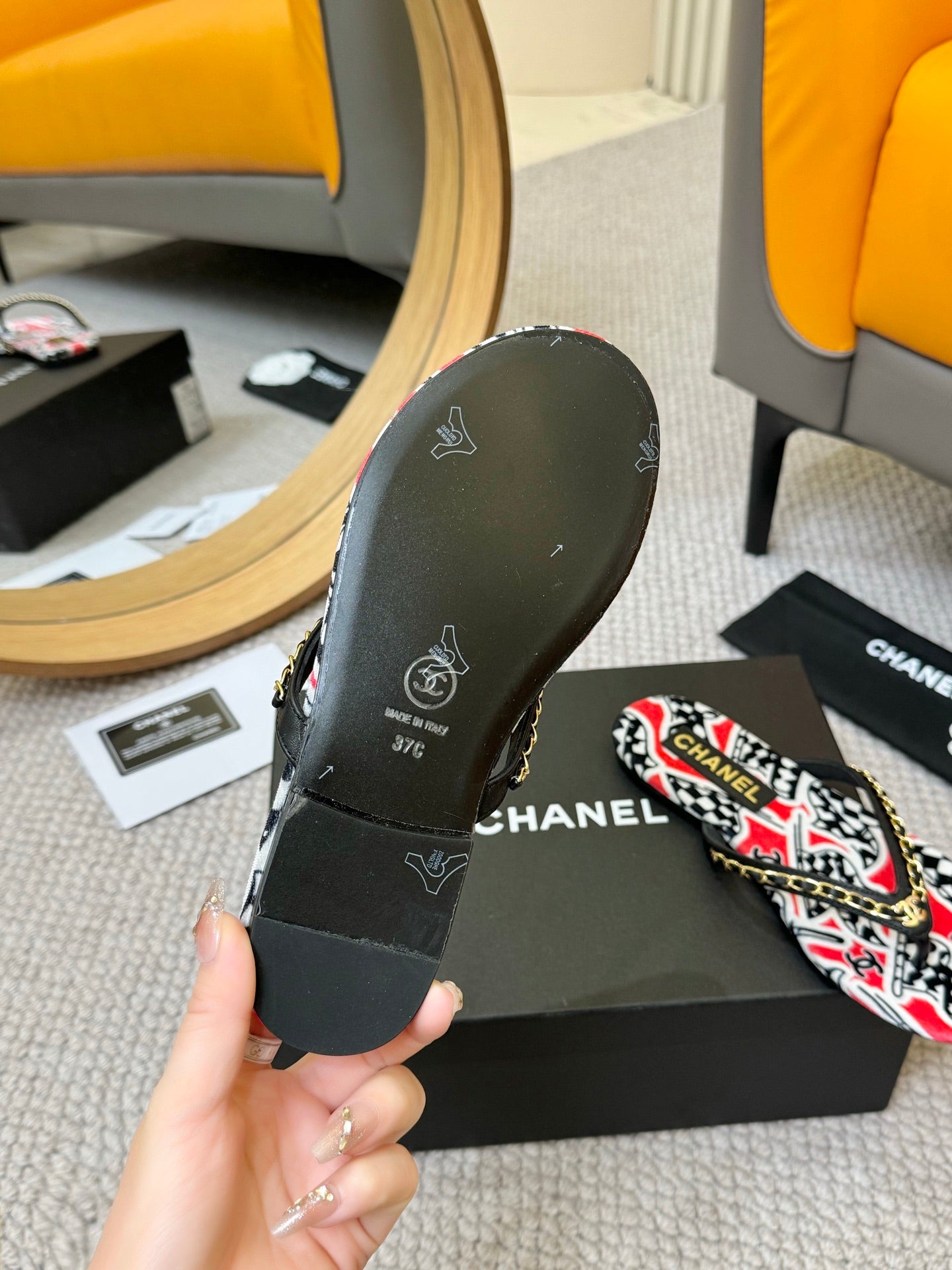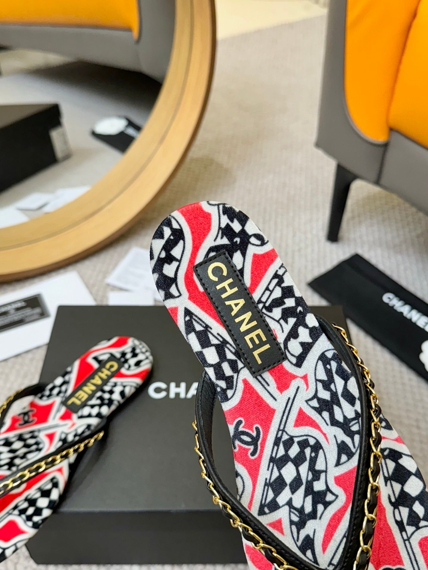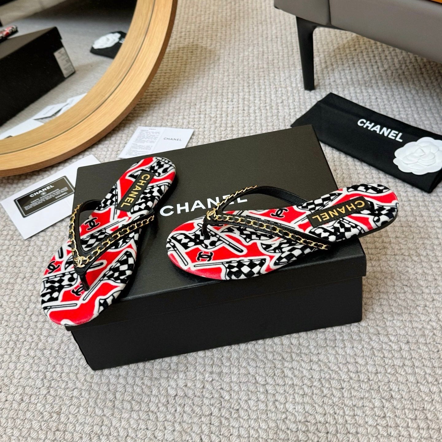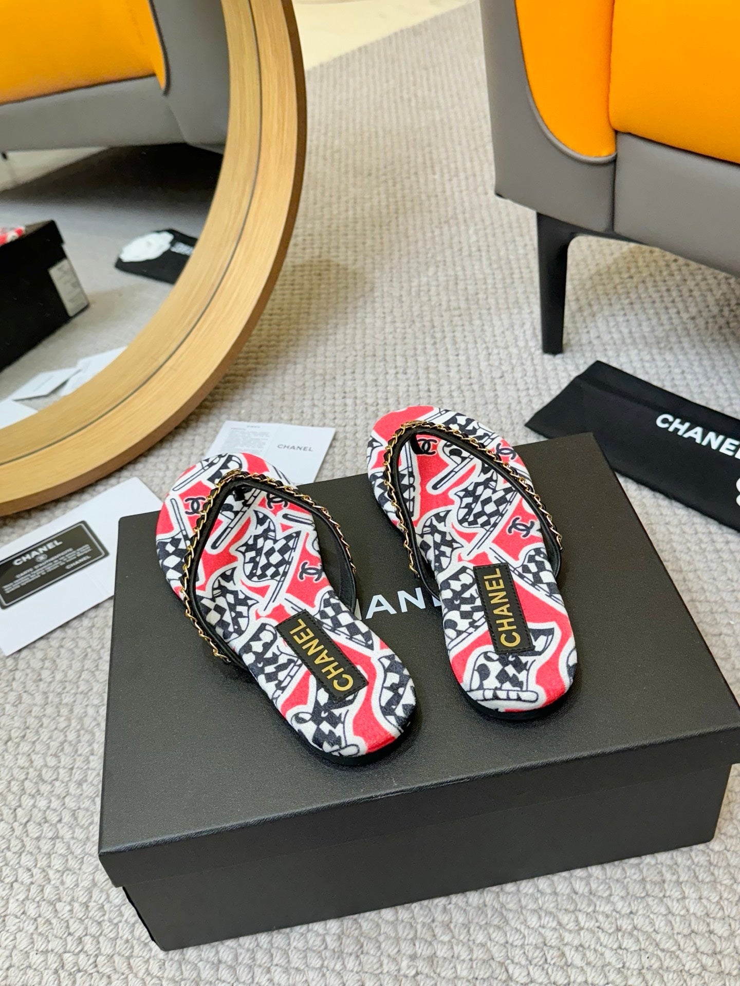 CC Chain Strap Thong Slippers Red Cloth Sheepskin Velvet 305868