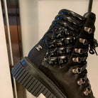 CC Combat Boots 50mm In Black Glossy Calfskin Quilted And Lycra Fabric 940073