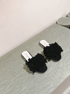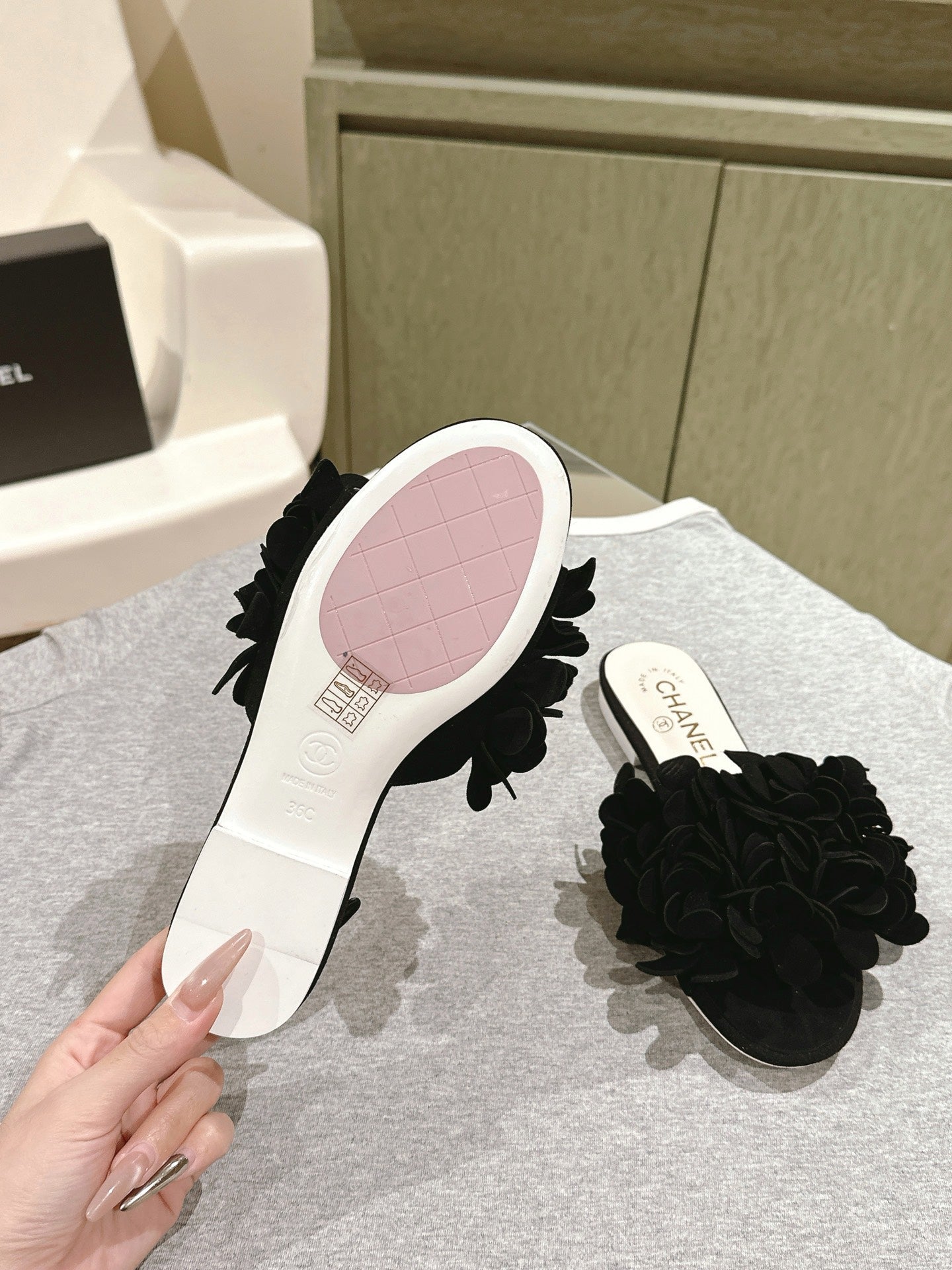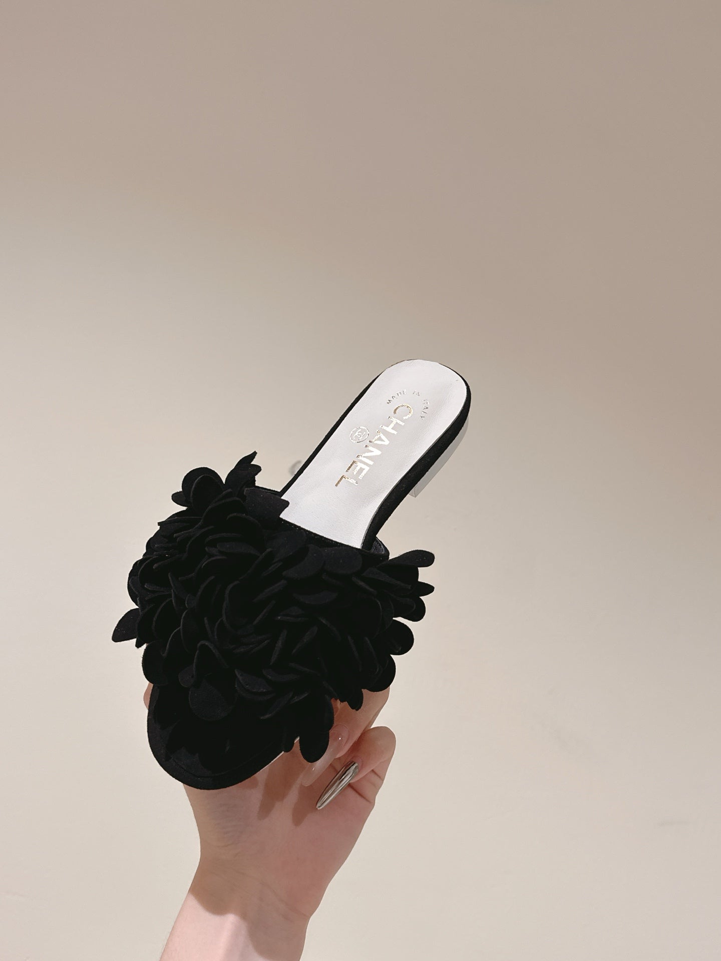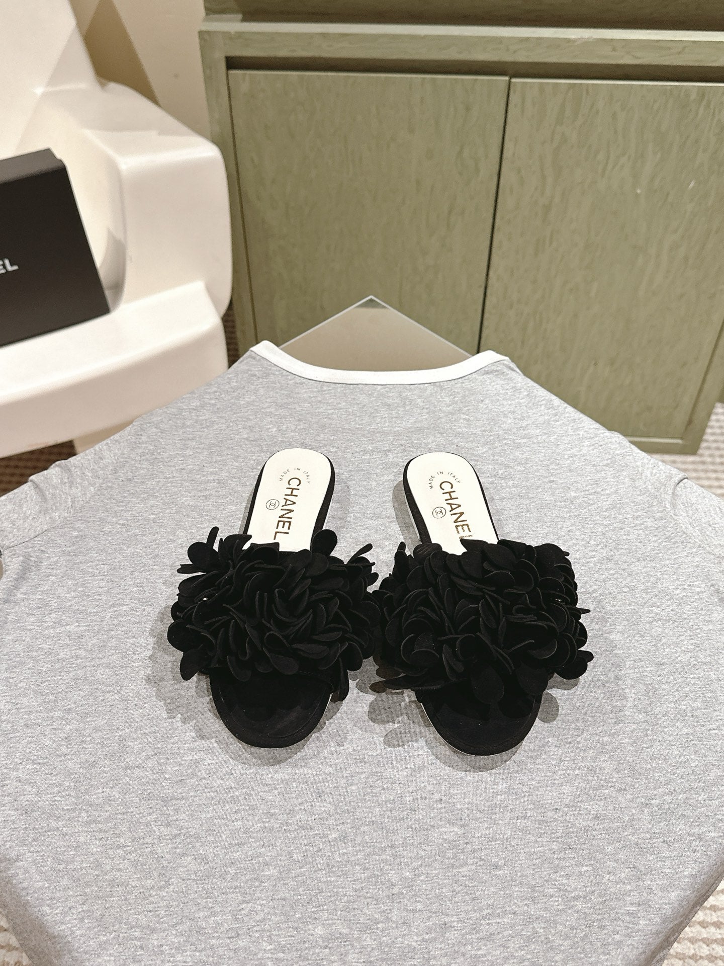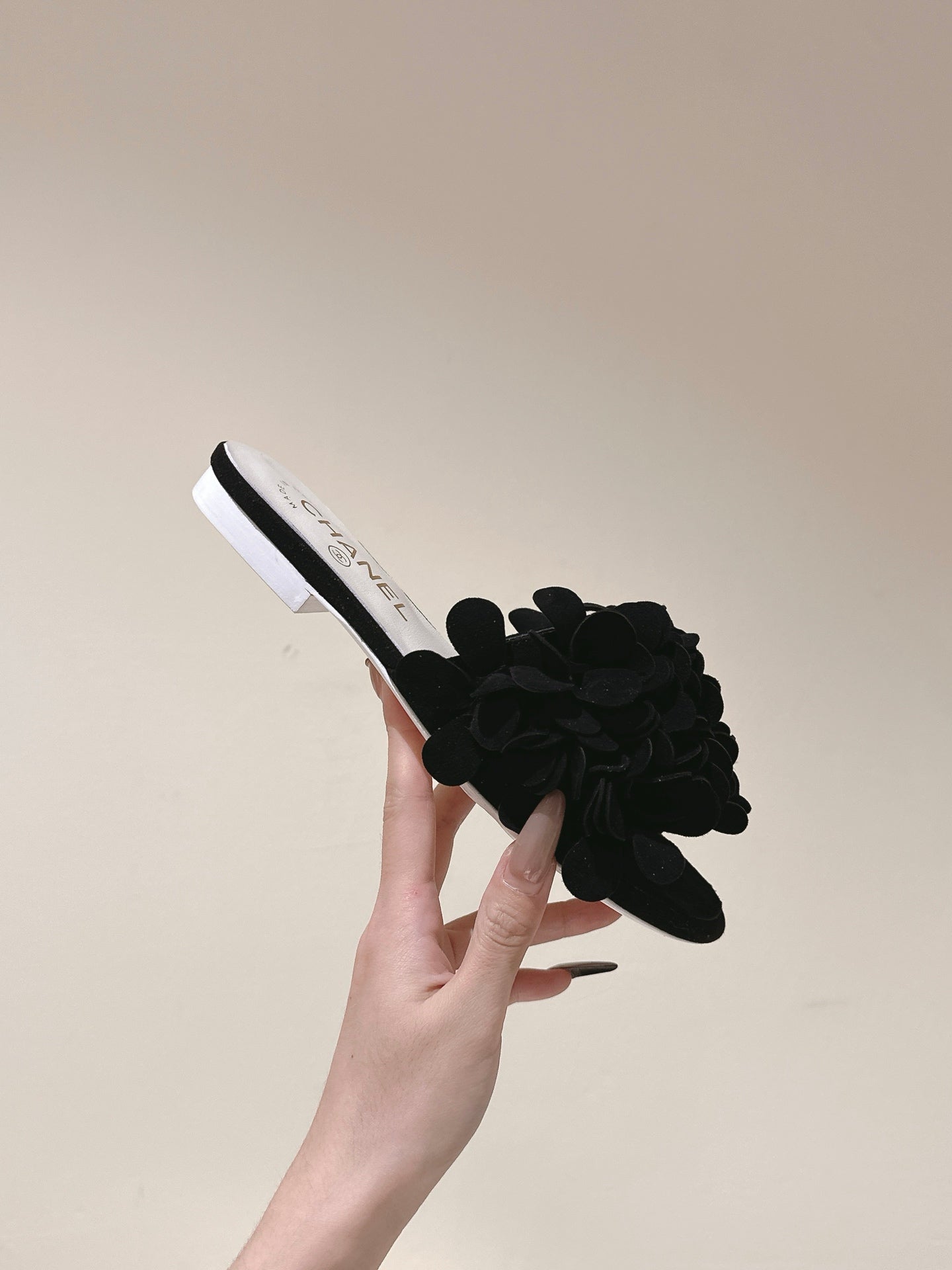 CC Floral Slide Flat Black Suede Cowhide 454282