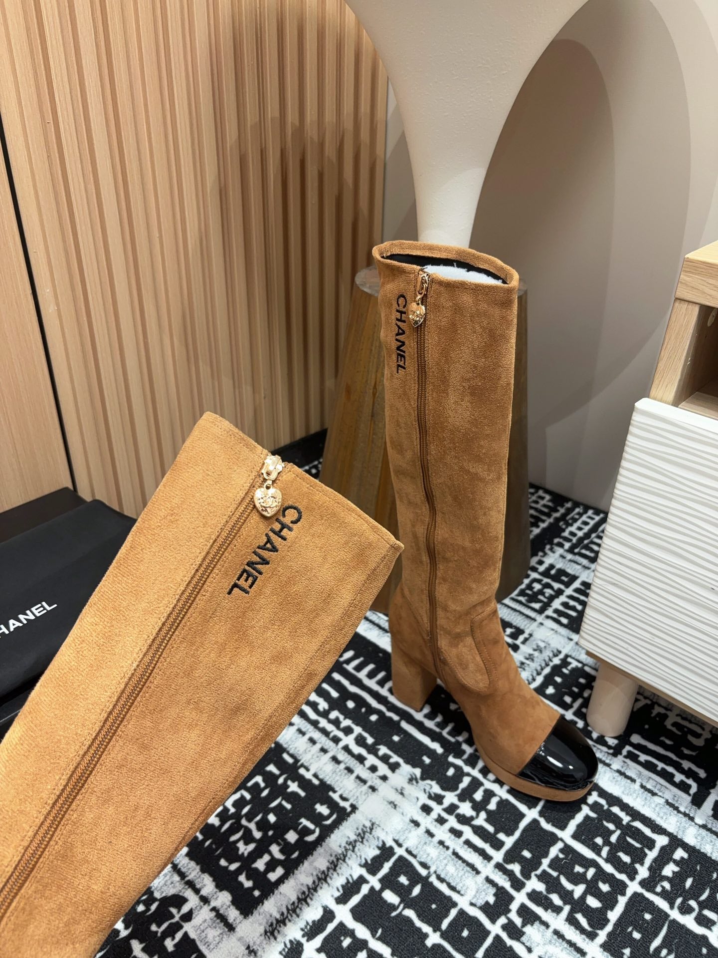 CC High Boots 90mm Brown Black Suede