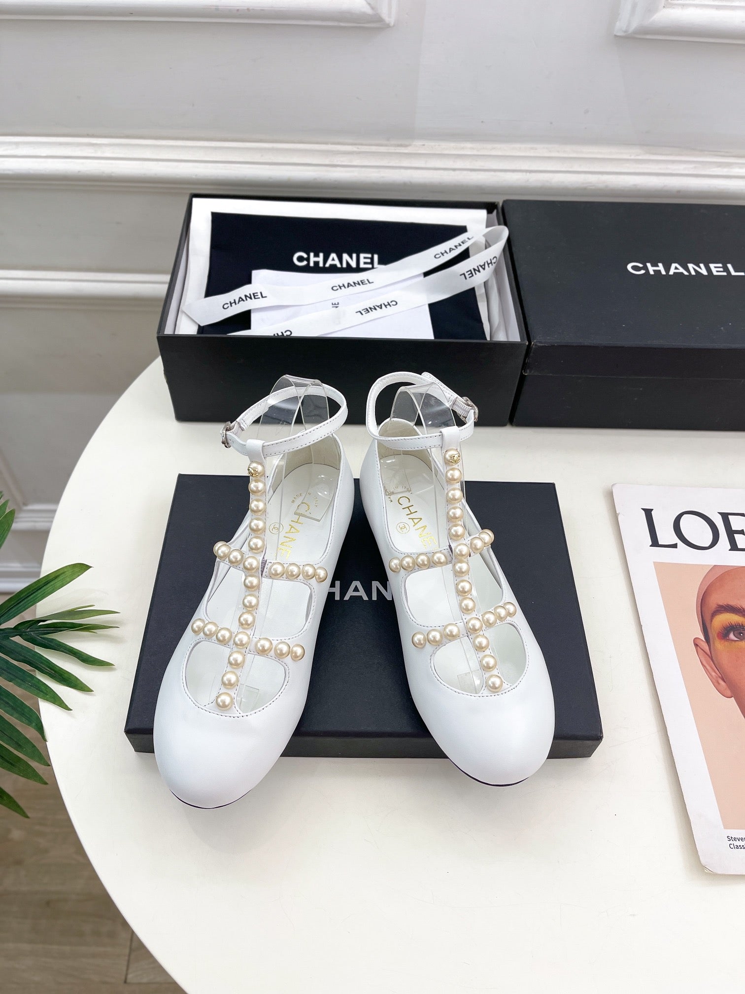CC Mary Jane 10mm In White With Small Pearls Lambskin 948758