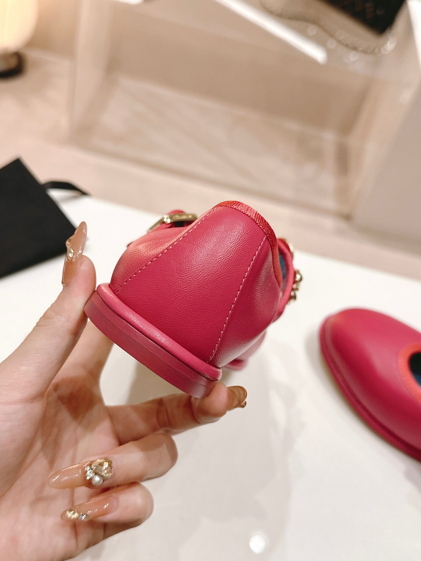 CC MARY JANES DARK RED CALFSKIN LIGHT GOLD METALIC