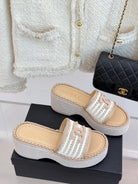 CC Mesh Hollow Chain Double C Thick-Soled Slippers 70mm Beige White 265648