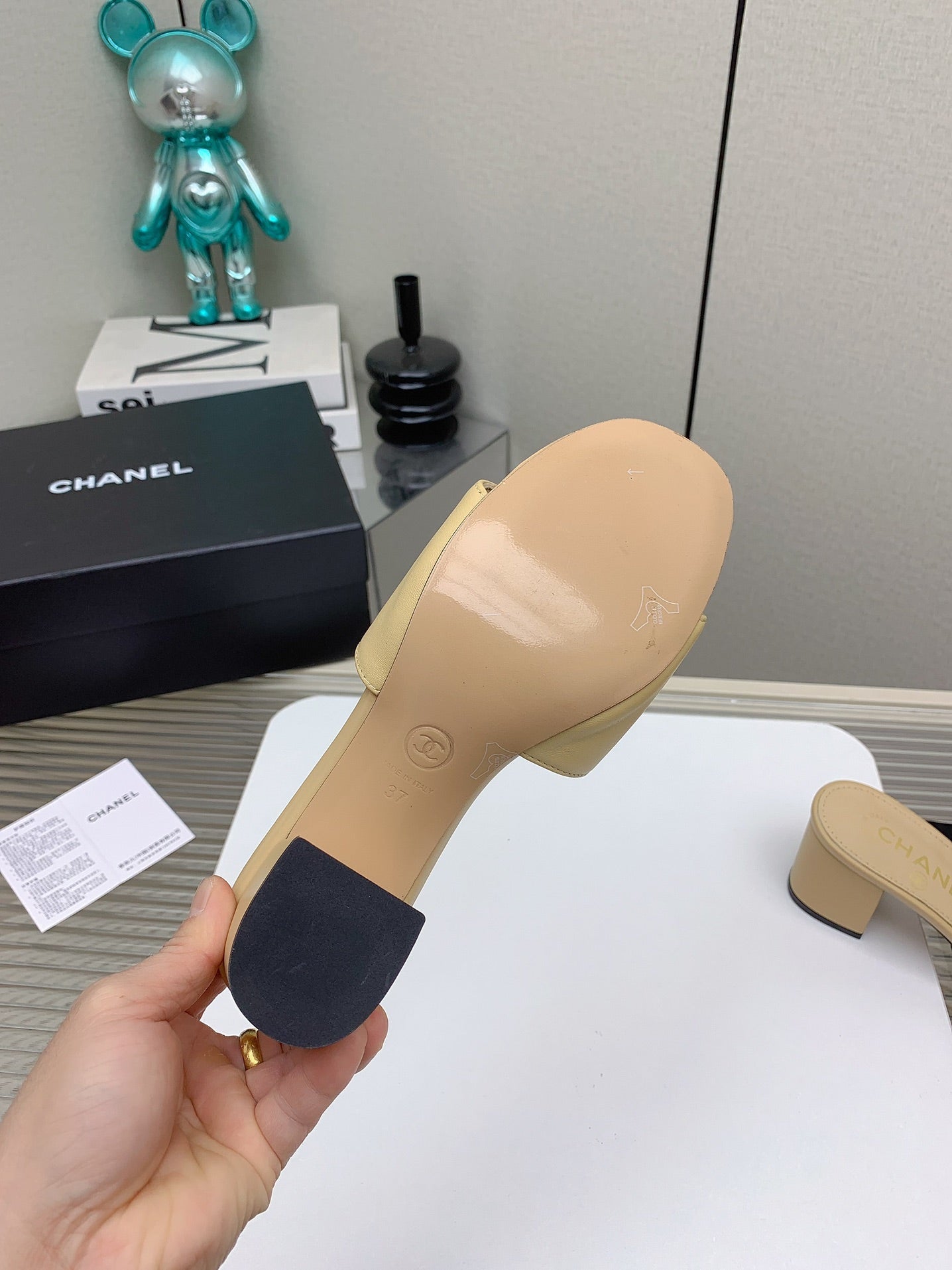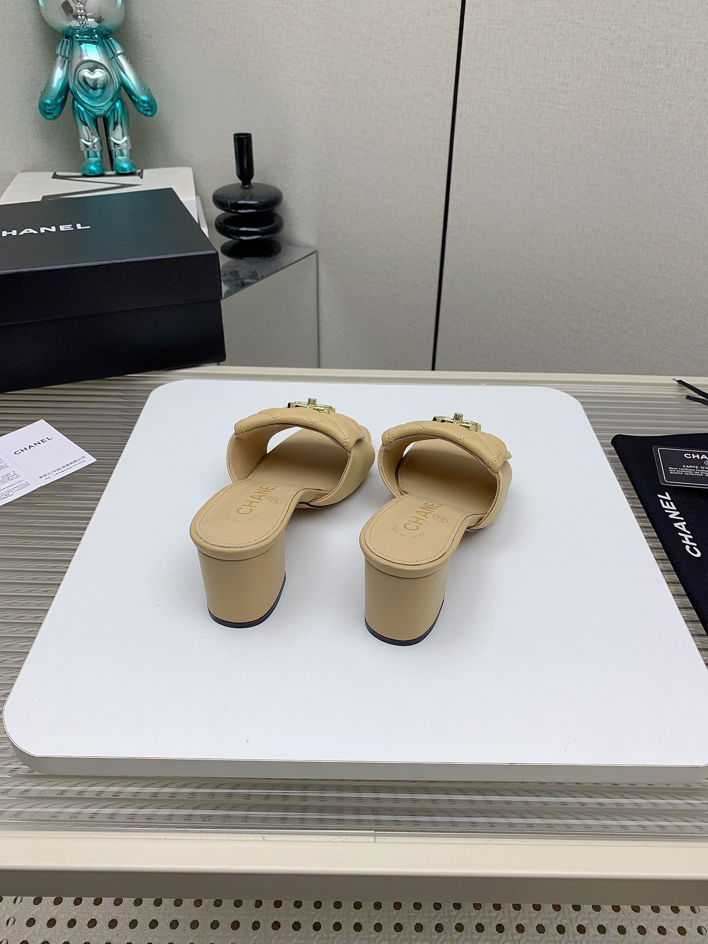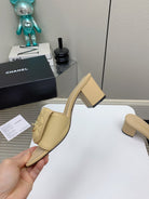 CC Mule Sandals 50mm In Beige Quilted Lambskin 148946