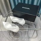 CC Pumps 50 White Mesh Leather Pointed Toe