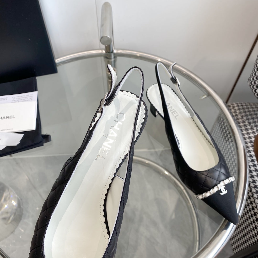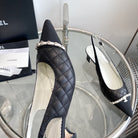 cc slingback pumps 45 black quilted lambskin black grosgrain pointed toe 582849