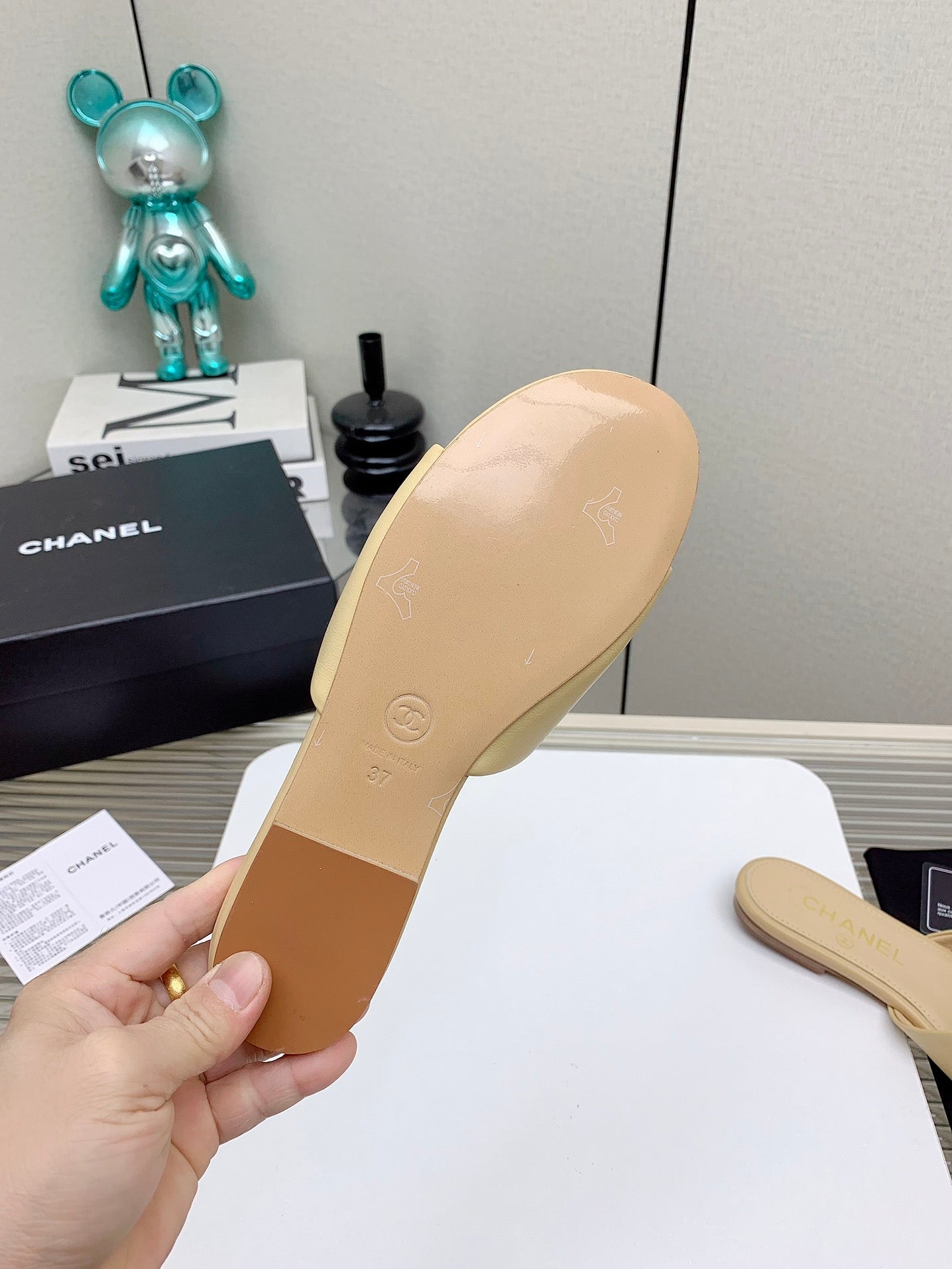 CC Slippers In Beige Lambskin 148995