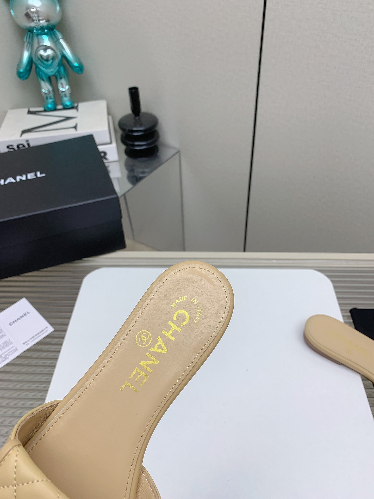 CC Slippers In Beige Quilted Lambskin 148963