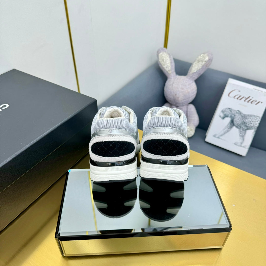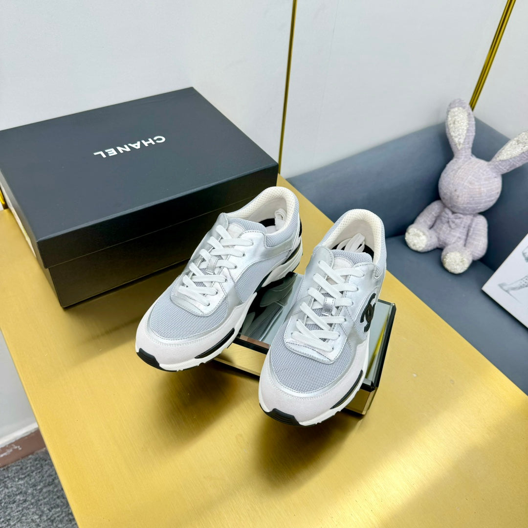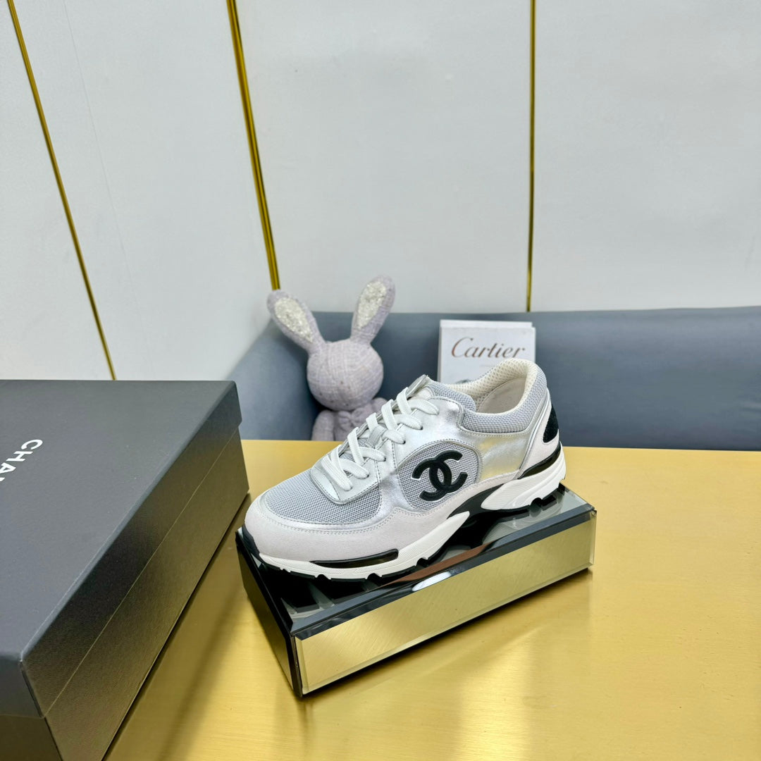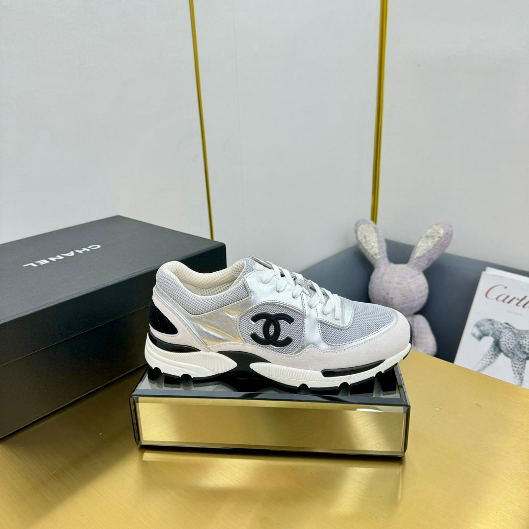cc womens sneaker in grey wool tweed silver calfskin and beige suede calfskin 137575