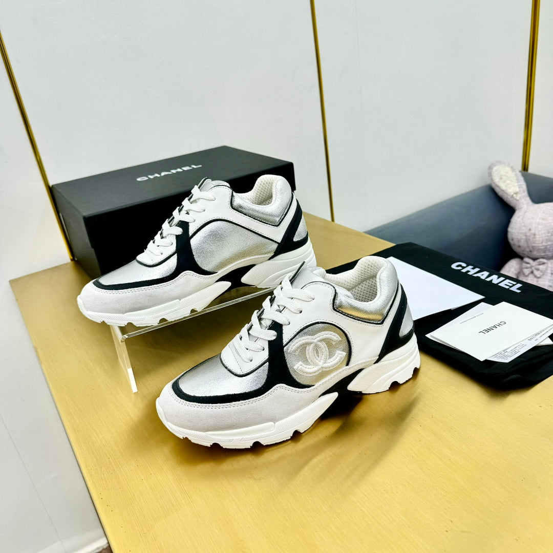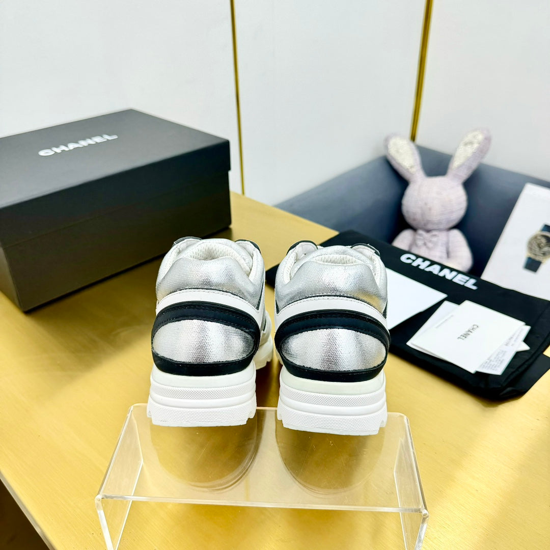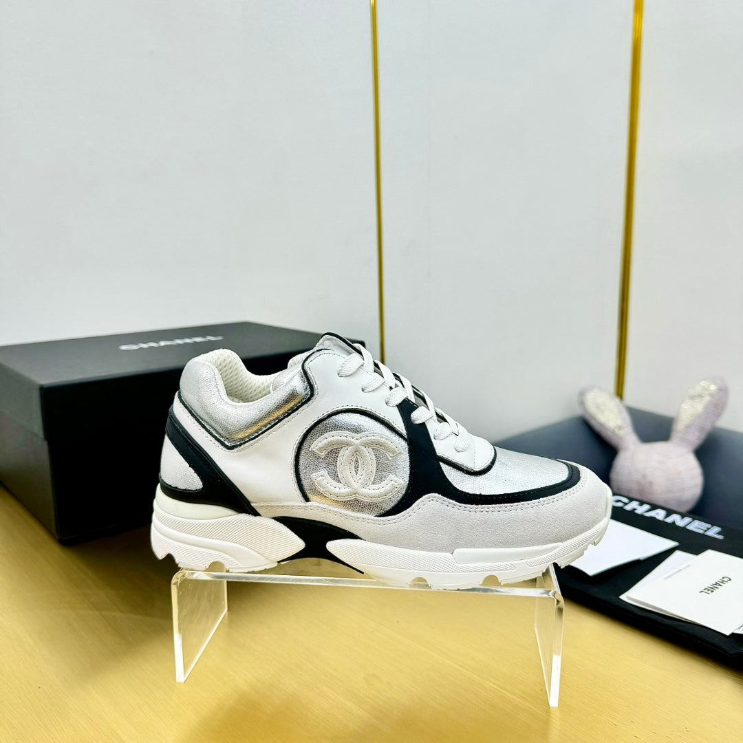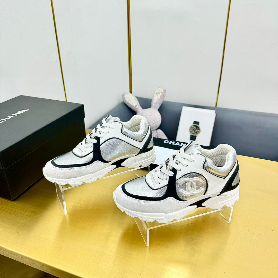 cc womens sneaker in silver wool tweed and white black suede calfskin 137610