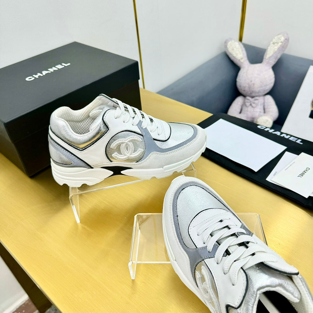 cc womens sneaker in silver wool tweed and white grey suede calfskin 137608
