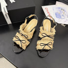 cc25 slingback sandal ̣65mm bow black grosgrain gold canvas 233590