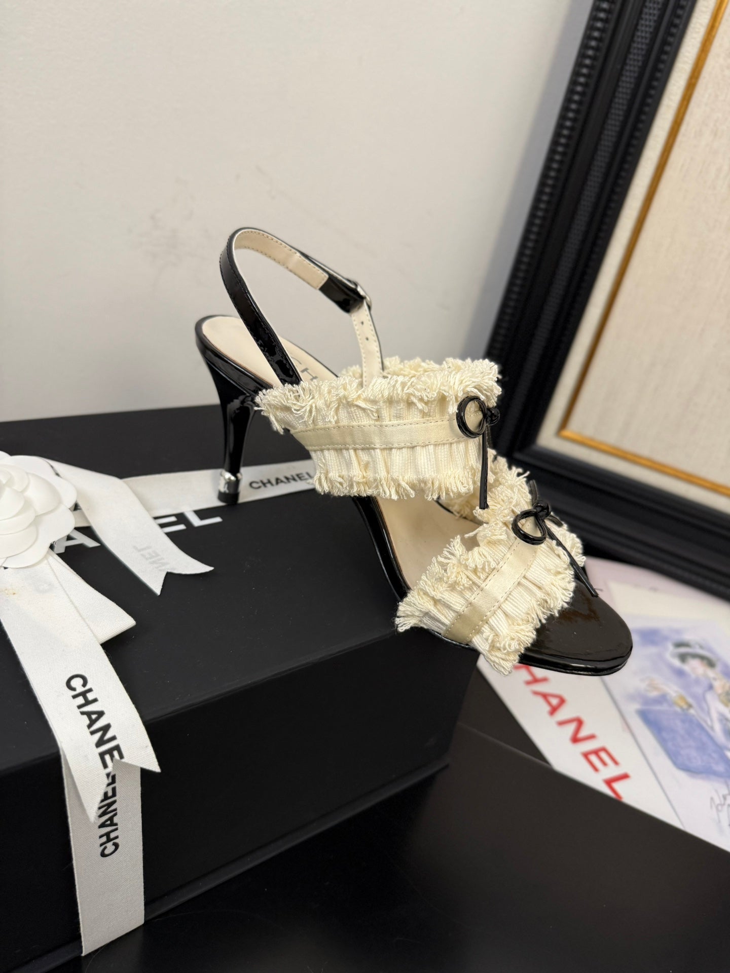 cc25 slingback sandal ̣90mm bow black grosgrain white canvas 233593
