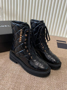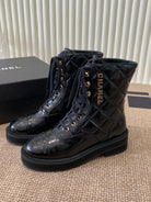 Chanel Electric Ankle Show Boot Black Glossy Leather 507527