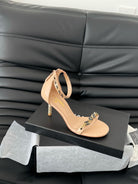 HIGH HEEL 7.5 MM SANDAL IN TAN BEIGE SHEEPSKIN WITH STICKERS