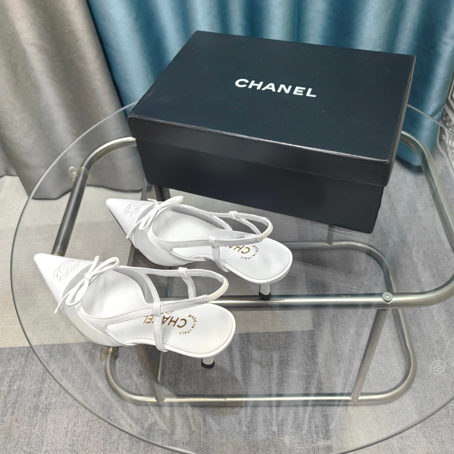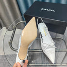 Slingback 50 White Mesh Calfskin Pointed Toe