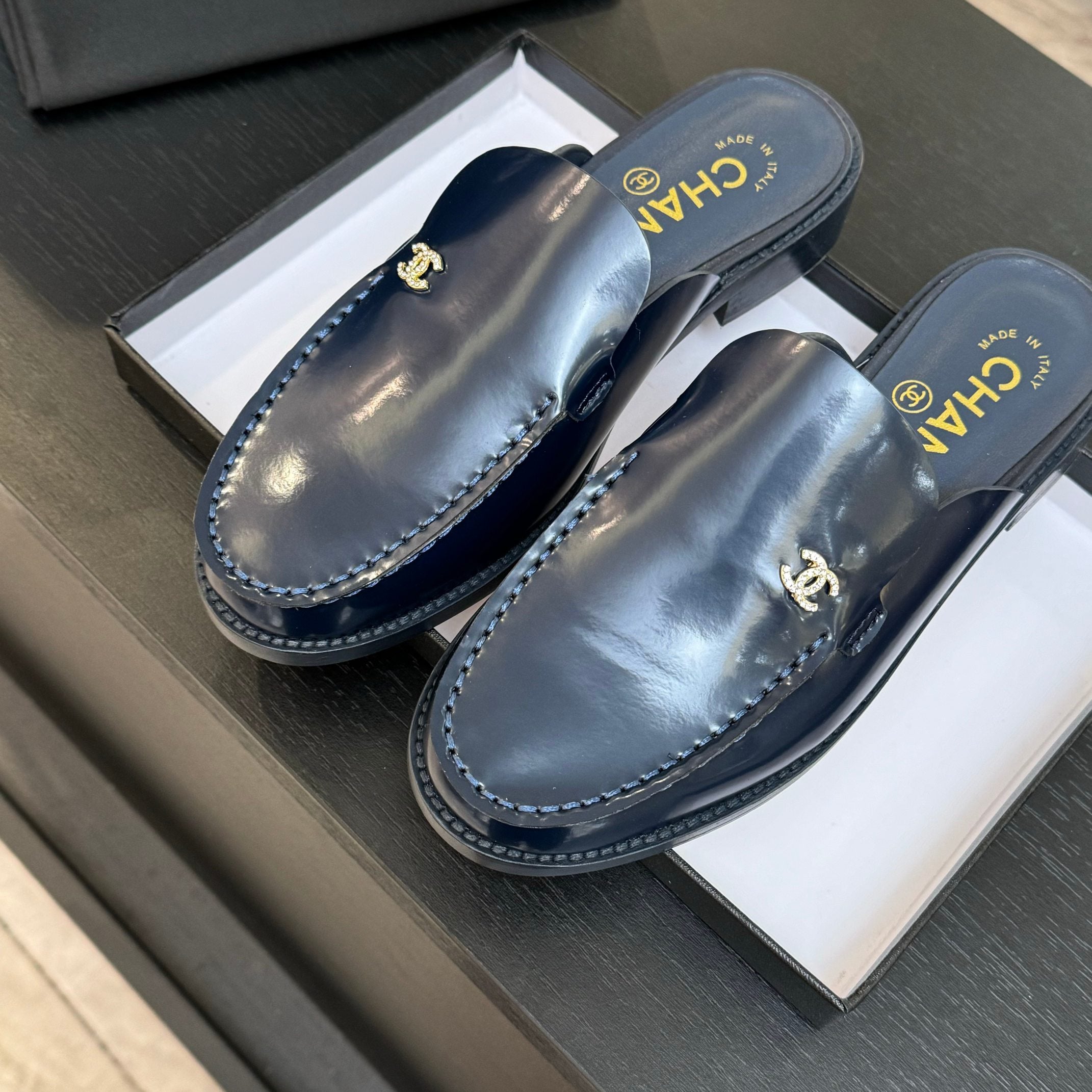 CC 25P Ballet Flat Flower Black Calfskin Patent Calfskin