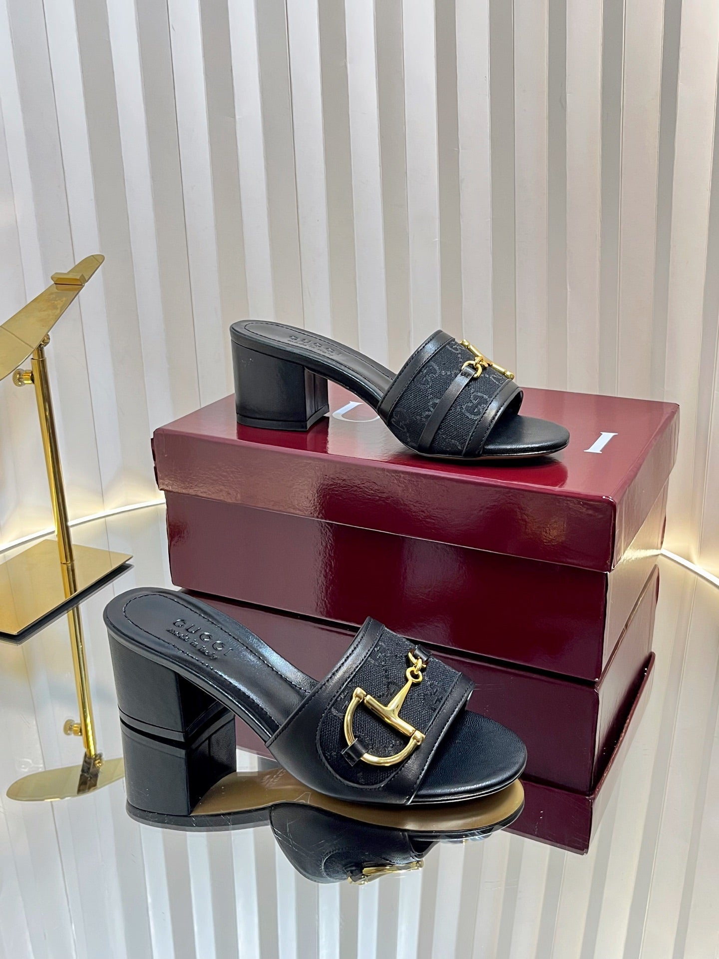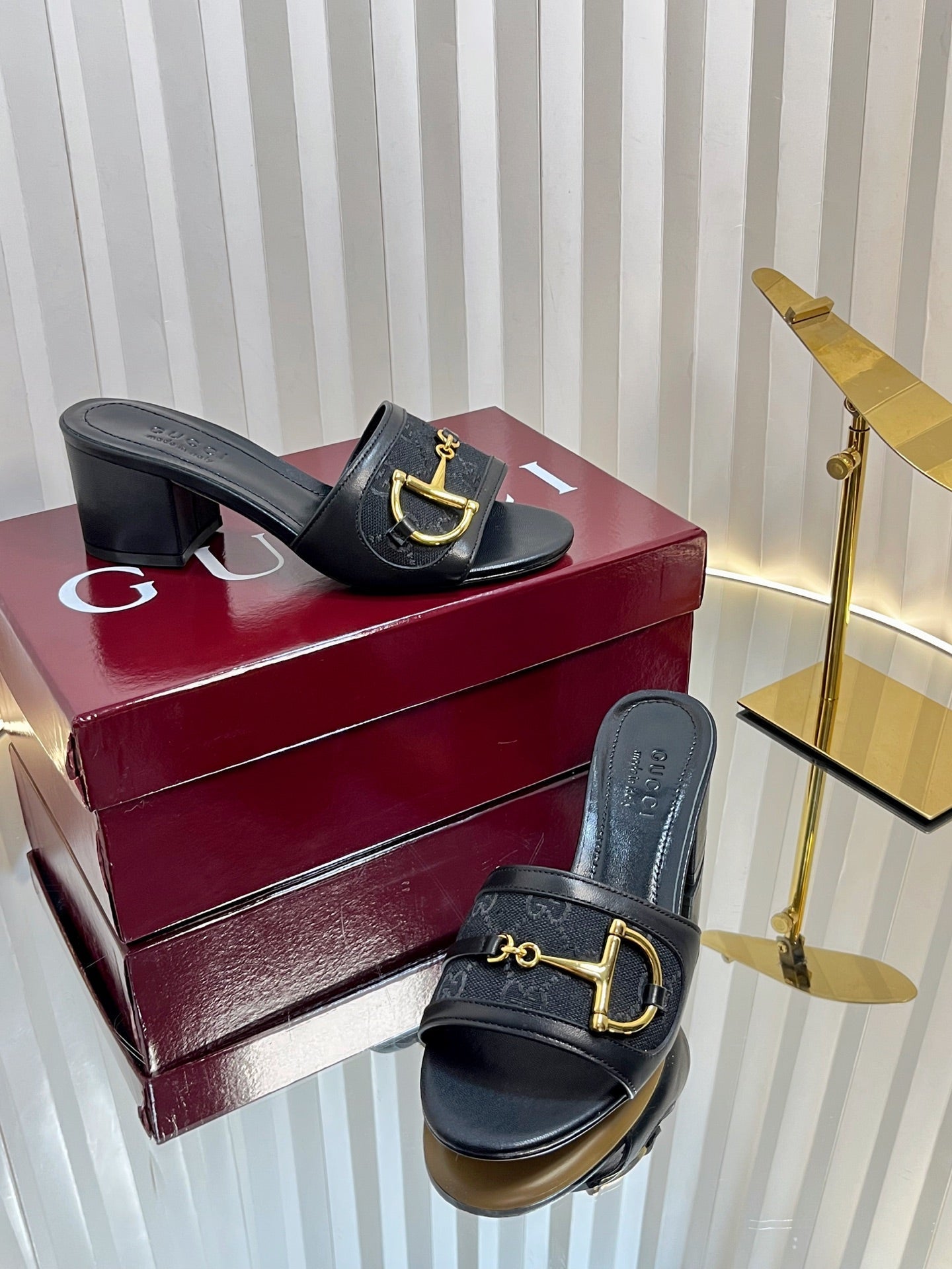 GC 25 Horsebit GG 50mm Sandals Black Canvas 294680