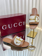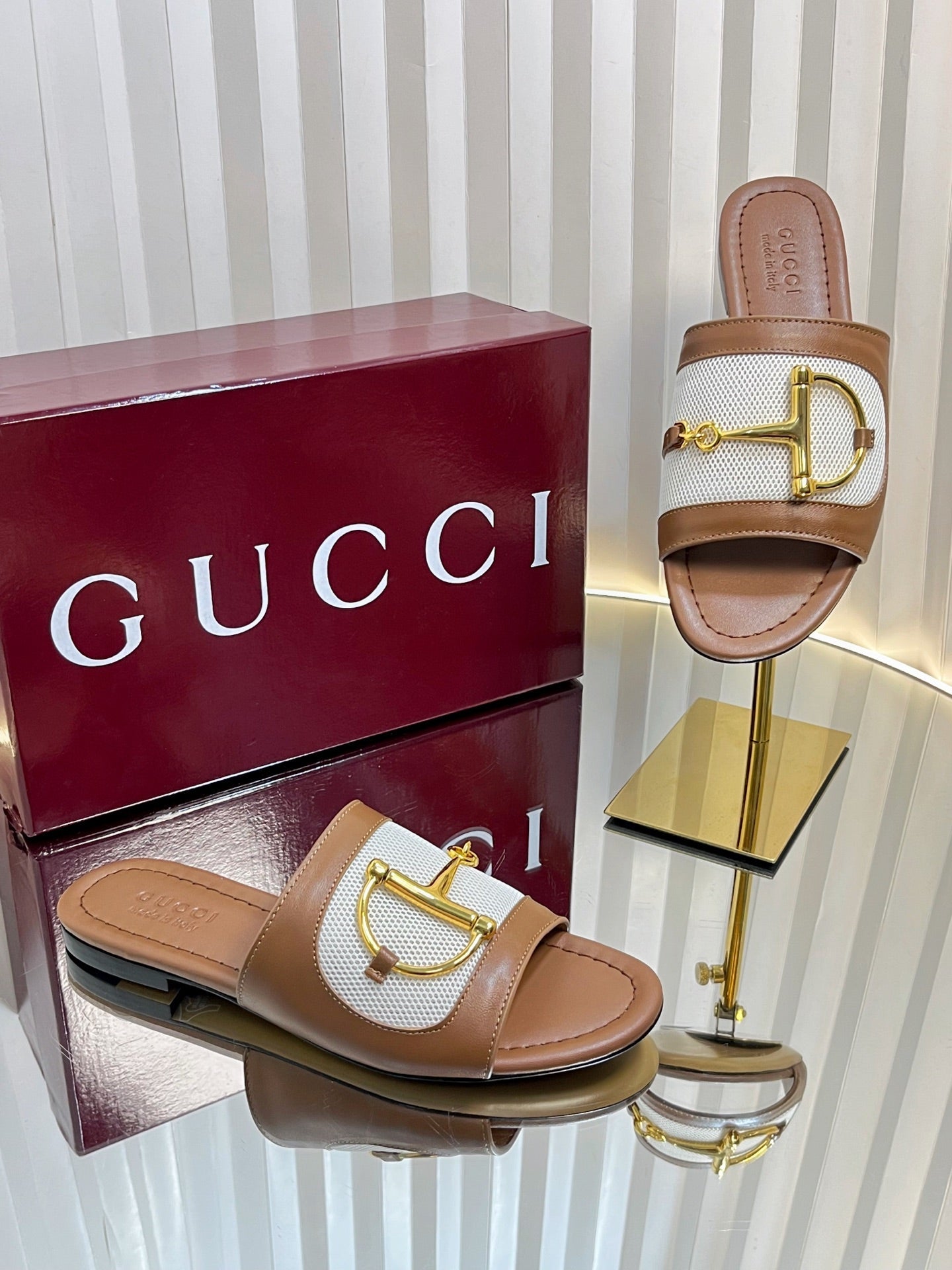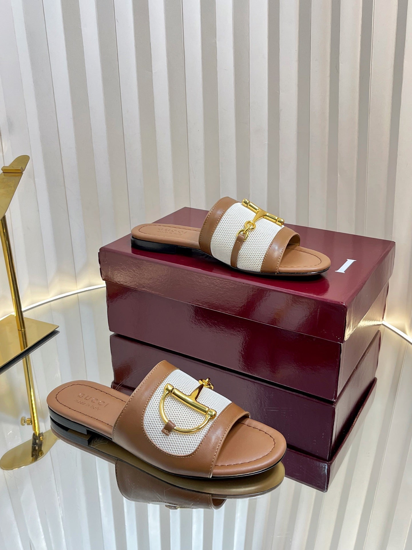 GC 25 Horsebit GG Sandals Brown Canvas Sheepskin 294662