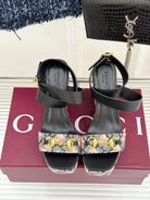 GC Floral Platform Wedge Sandal Black Mix Flower lambskin
