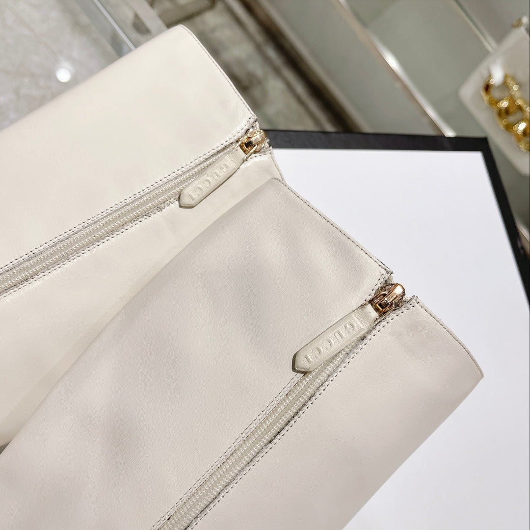GG CLASSIC KNEE HIGH BOOTS IN WHITE IMPORTED CALFSKIN