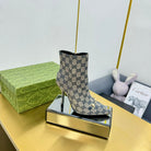 GG HORSEBIT ANKLE BOOT IN PALE GRAY MONOGRAM CANVAS