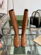 GG KNEE HIGH BOOTS WITH HORSEBIT IN CHOCOLATE BROWN CALFSKIN