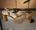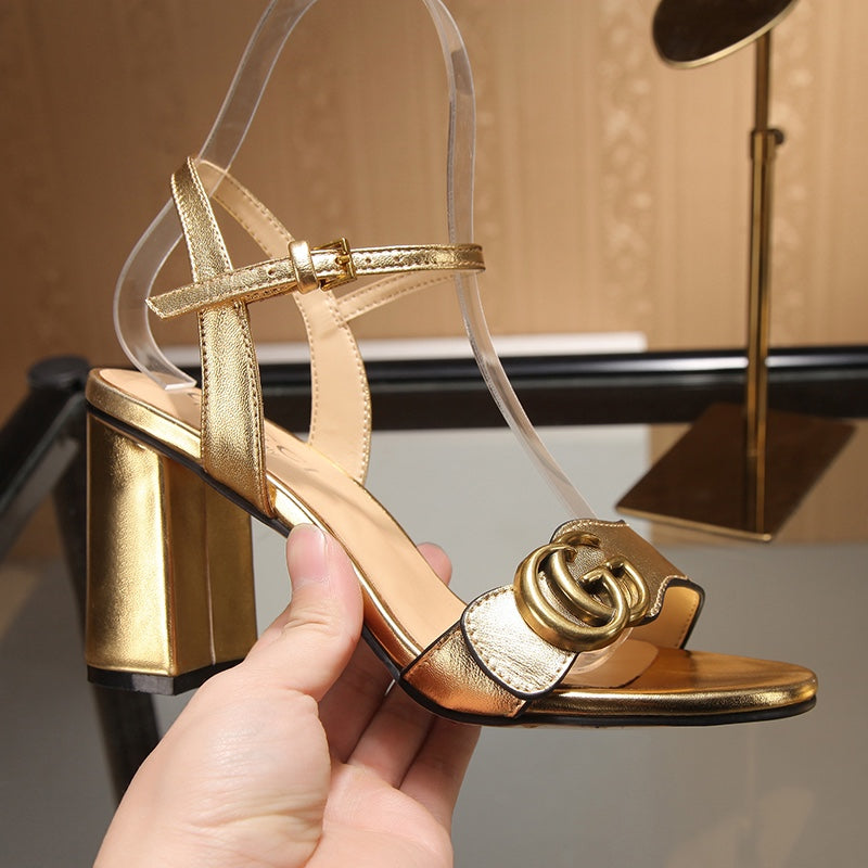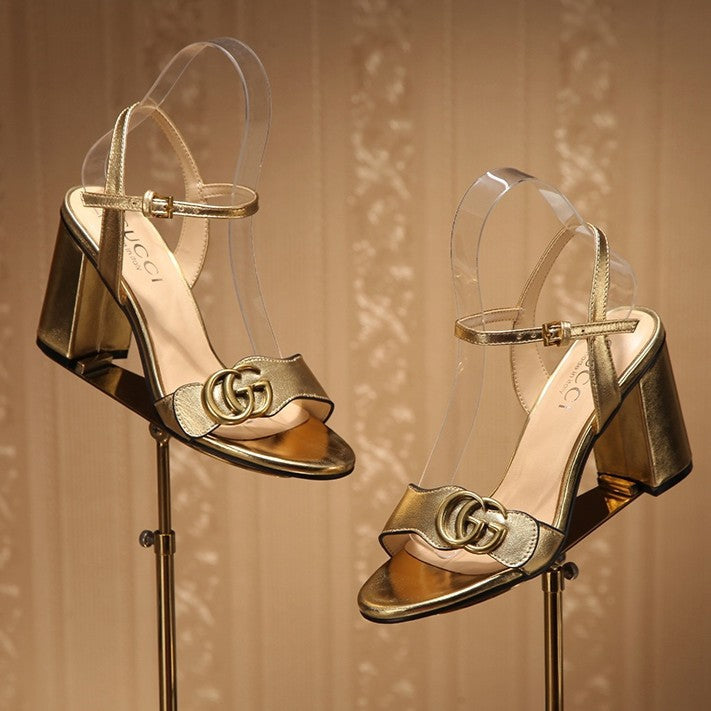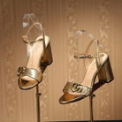 GG Marmont Ankle Strap Sandal 8cm Gold Sheepskin 342566