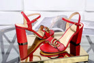 GG Marmont Ankle Strap Sandal 8cm Red Sheepskin 342565