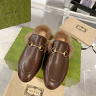 GG Princetown Slipper Brown Calfskin Tuscan Wool