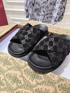 GG SLIDES IN BLACK SUEDE WITH EMBOSSED LOGO STYLE 6