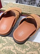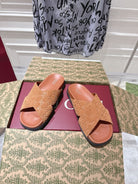 GG SLIDES IN BURNT ORANGE SUEDE WITH EMBOSSED LOGO STYLE 11