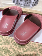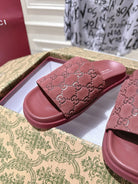 GG SLIDES IN RED SUEDE WITH EMBOSSED LOGO STYLE 3