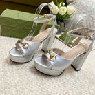 Horsebit 11cm Platform Sandal Silver Metalic Calfskin