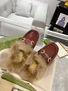 HORSEBIT MULE WITH WEB IN WINE RED CALFSKIN MIX MINK FUR