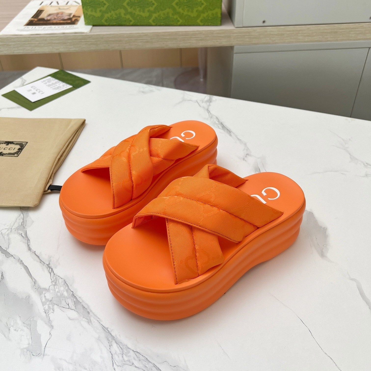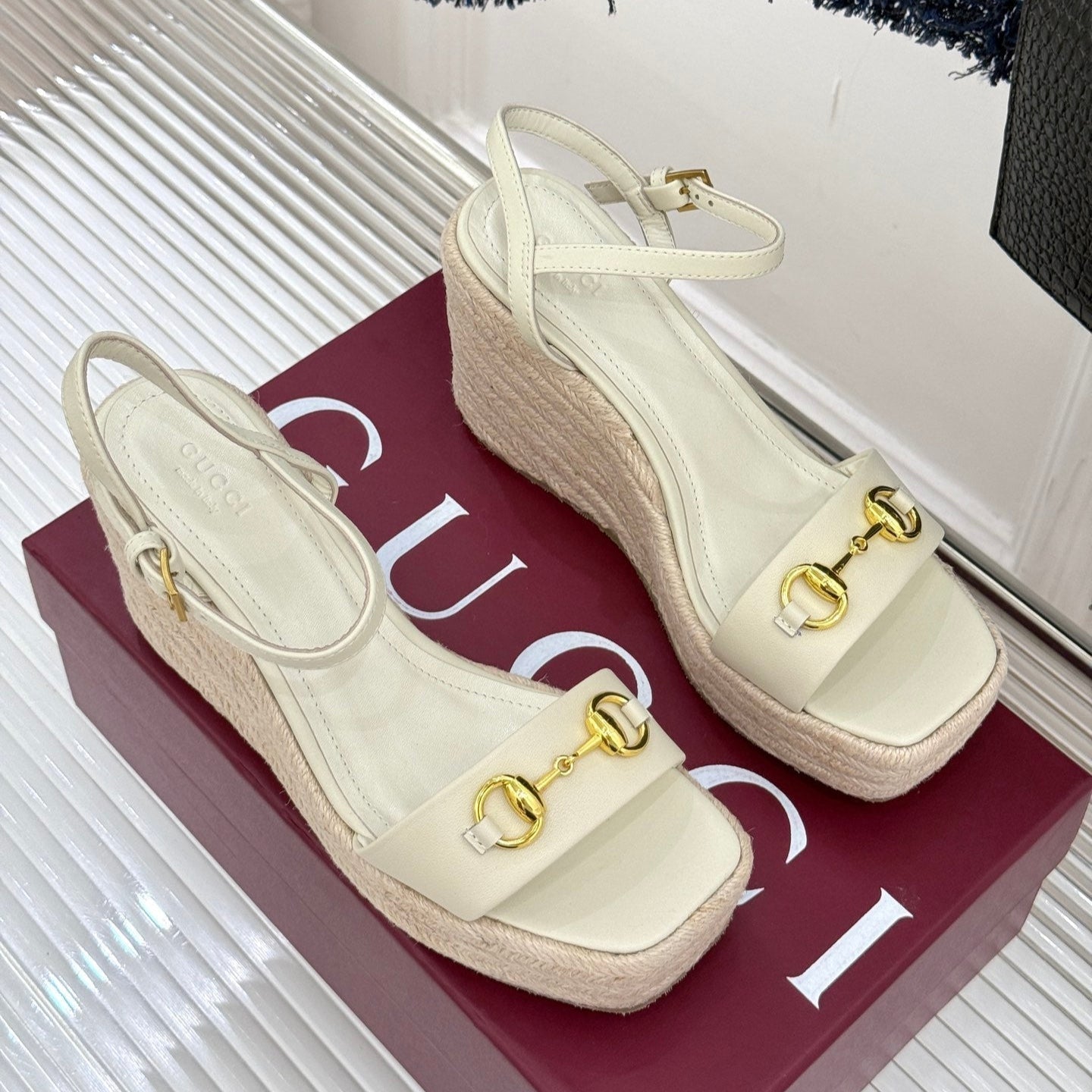 GC Floral Platform Wedge Sandal White Mix Flower lambskin